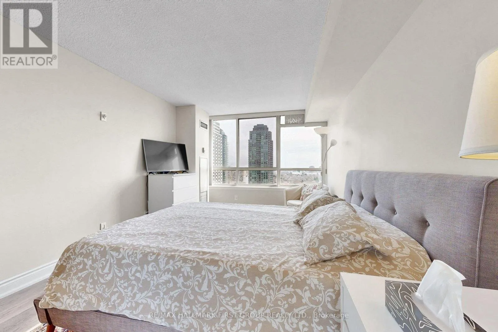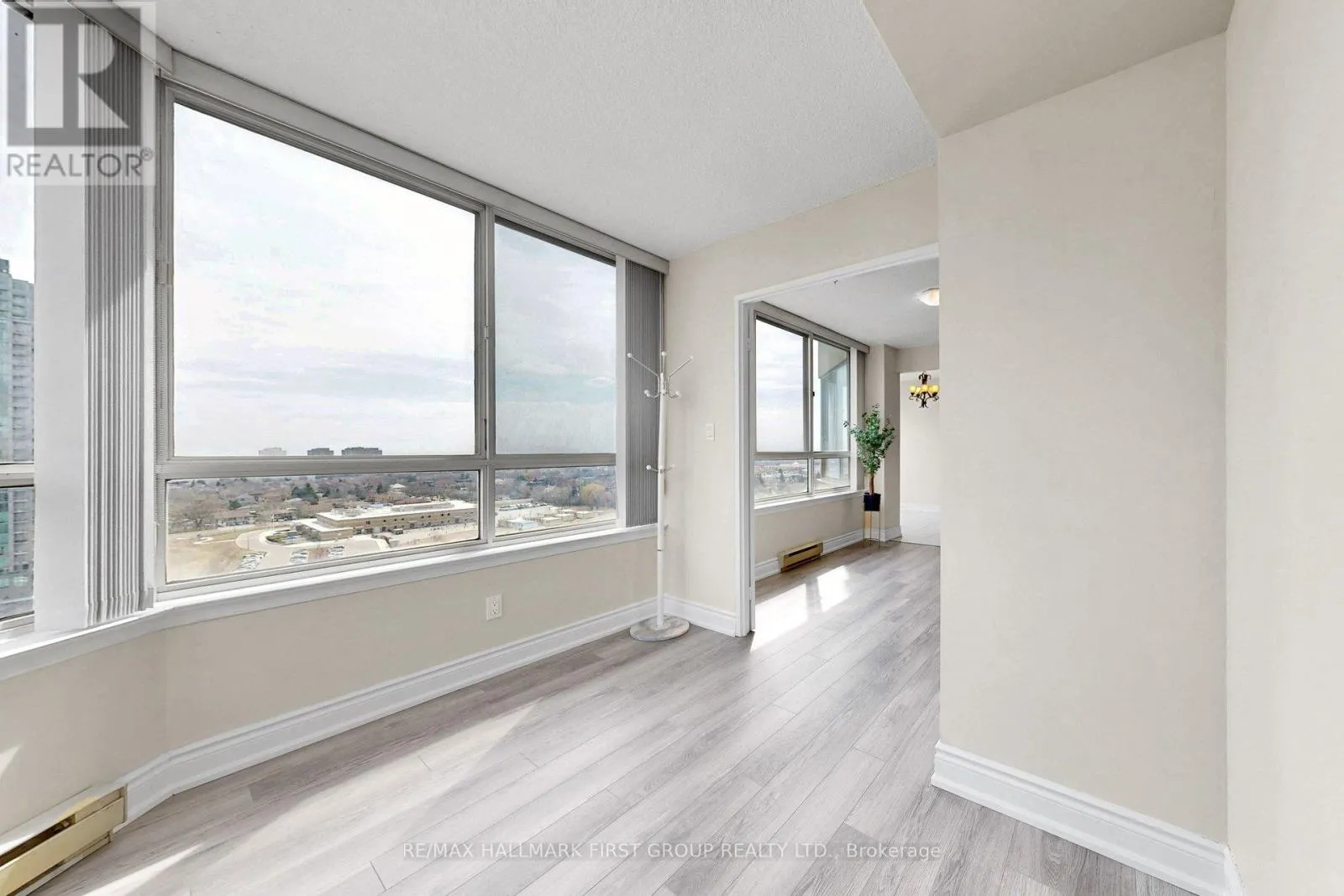Welcome to a rarely offered, sun-filled corner suite in the prestigious Towne-one of Mississauga’s most sought-after addresses. This beautifully refreshed 2-bedroom + solarium, 2-bathroom residence offers an impressive 1,395 sq ft of well-designed living space, highlighted by breathtaking southeast views of Lake Ontario and the city skyline. Freshly painted and move-in ready, the spacious open-concept living and dining area is