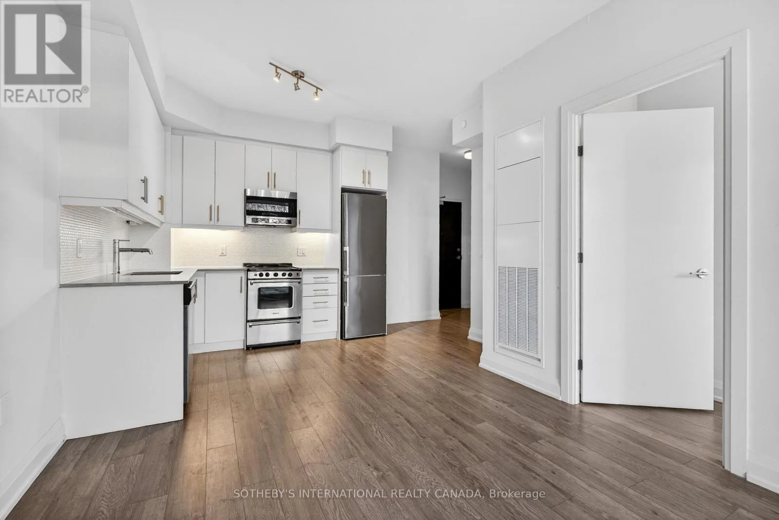This upgraded unit in Downtown Hamilton’s KiWi Condo offers an impressive 380+ square foot private terrace, creating a seamless extension of your interior living space. Inside, you’ll find stone kitchen countertops, six stainless steel appliances, in-suite laundry, and sleek laminate flooring throughout. KiWi Condo is a modern, well-managed building known for its clean design, convenient amenities, and urban lifestyle appeal.
