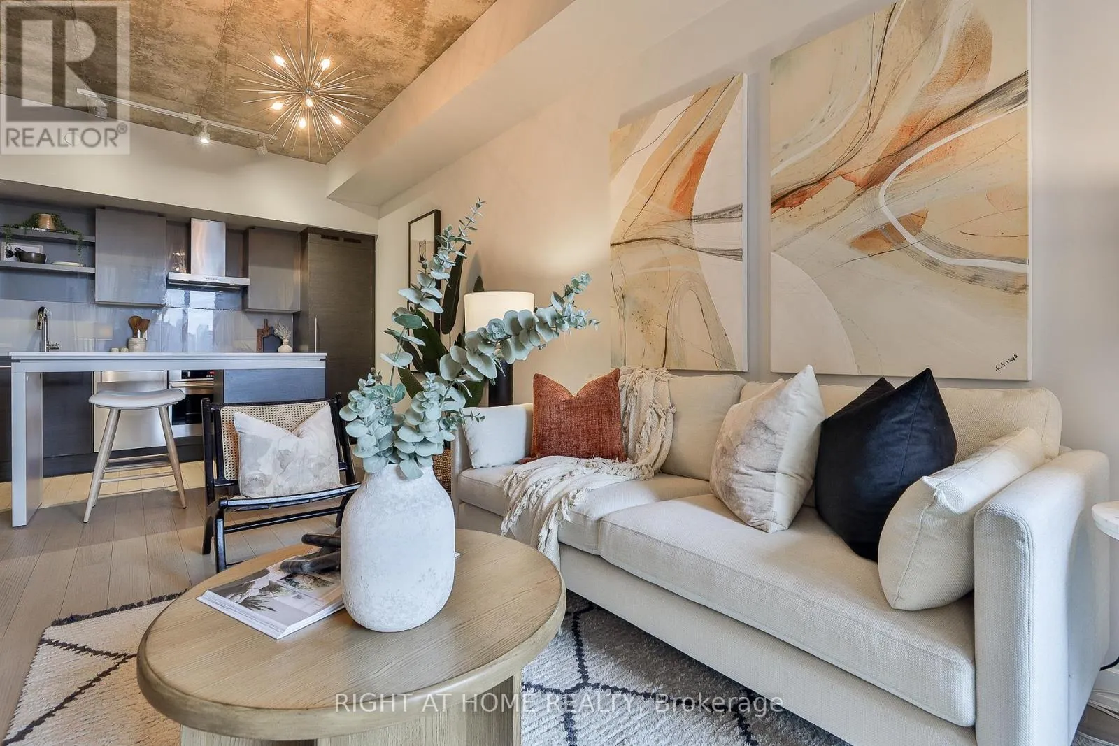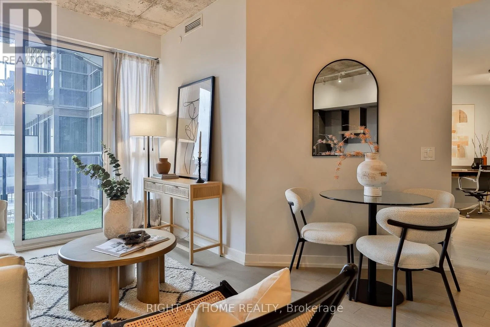 Modern King West living at DNA3, thoughtfully designed by Cecconi Simone. This stylish east-facing 1 bed + den features 9 ft exposed concrete ceilings and a smart layout with no wasted space. Proper bedroom (no sliders!), rich wood floors, a modern kitchen with integrated appliances and a large eat-in island with stone counters. Well appointed bath with soaker tub. Spacious