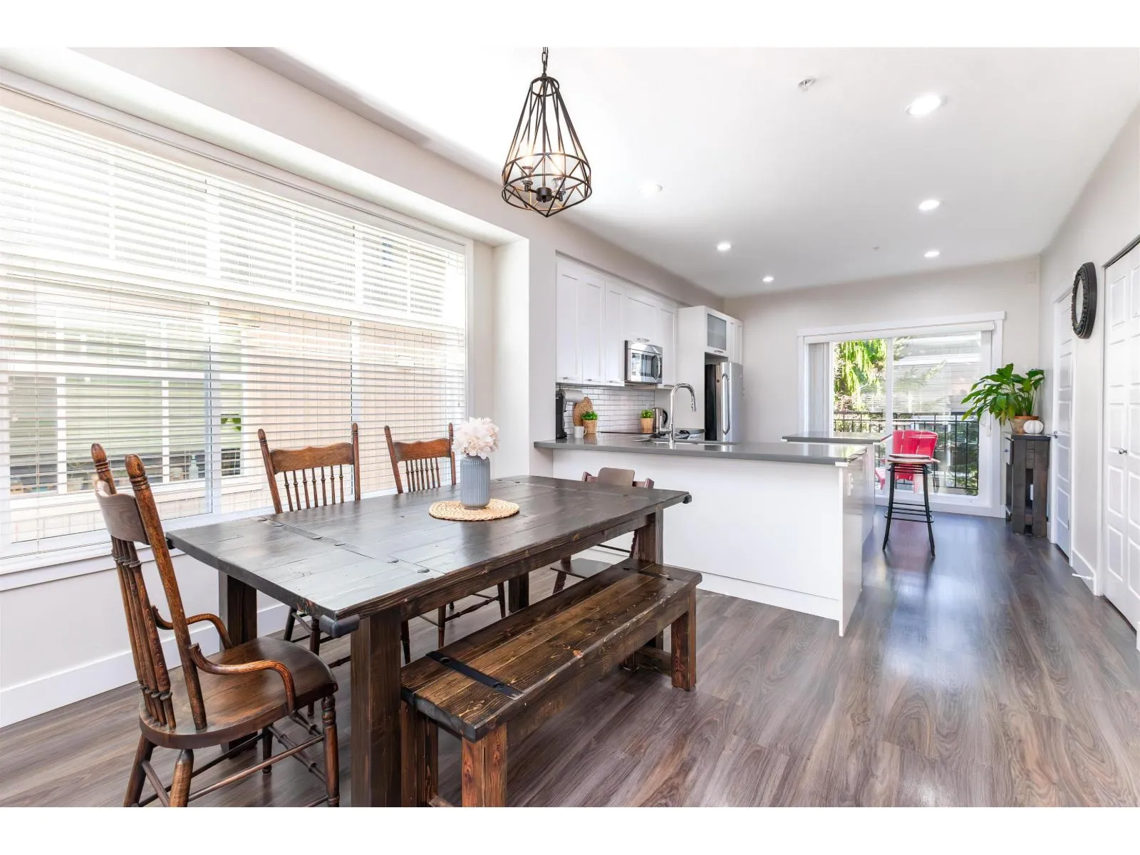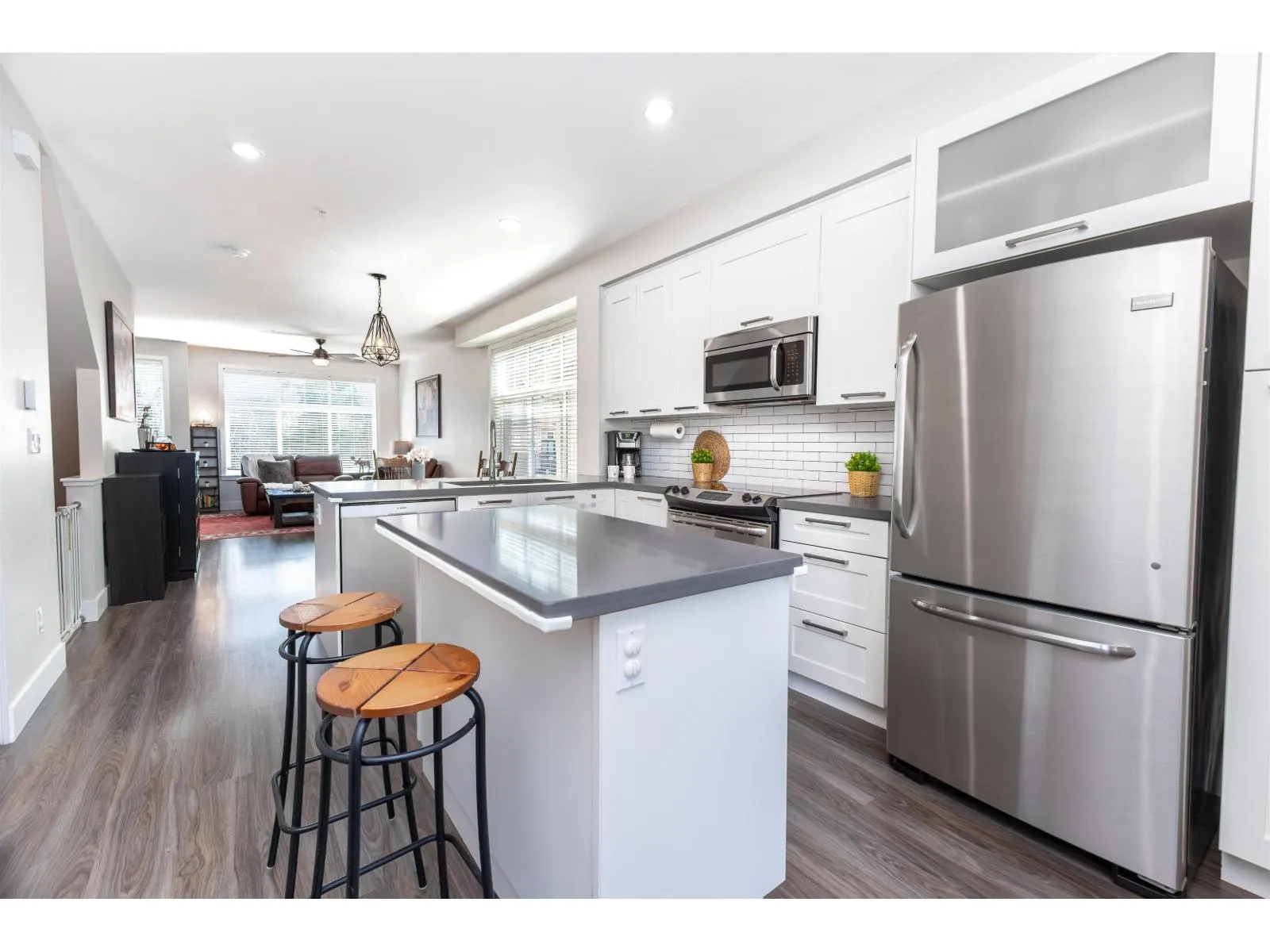 Nature’s Walk Presents: Bright and gorgeous END UNIT. Main floor features open concept design with 9′ ceilings, powder room, and lots of natural light with the extra windows. Kitchen boasts white shaker cabinetry, quartz countertops, stainless steel appliances, island with storage, and pantry. Balcony off the kitchen overlooking large fenced yard with mature trees for privacy. Upstairs you will find
