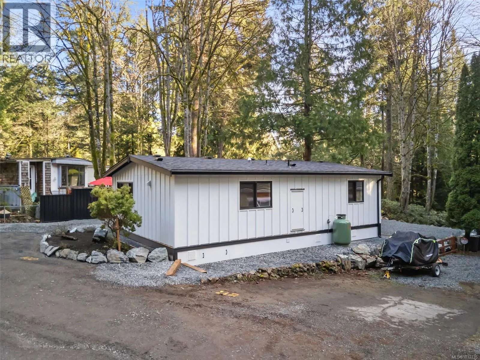OPEN HOUSE Sunday 130-330. Affordable Lakeside Living – This professionally restored double-wide presents an excellent lifestyle opportunity— Hidden Valley is a quiet, 55+ lakeside manufactured home park offering a nature-filled setting just minutes from Langford amenities. The home offers your own walls, outdoor space, and easy walk-in access from your driveway. Step up into a bright, open-concept 2-bedroom, 1-bathroom