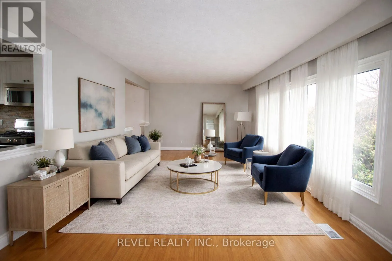 Experience the unique chance to reside in this exquisite 4-bedroom side-split, nestled on an expansive 106 x 166-foot lot adorned with mature trees, ensuring a private and serene ambiance. This stunning home has undergone thoughtful updates, boasting a luminous and grand gourmet kitchen equipped with top-of-the-line Bosch appliances and an inviting walkout to the deck. Revel in the elegance of