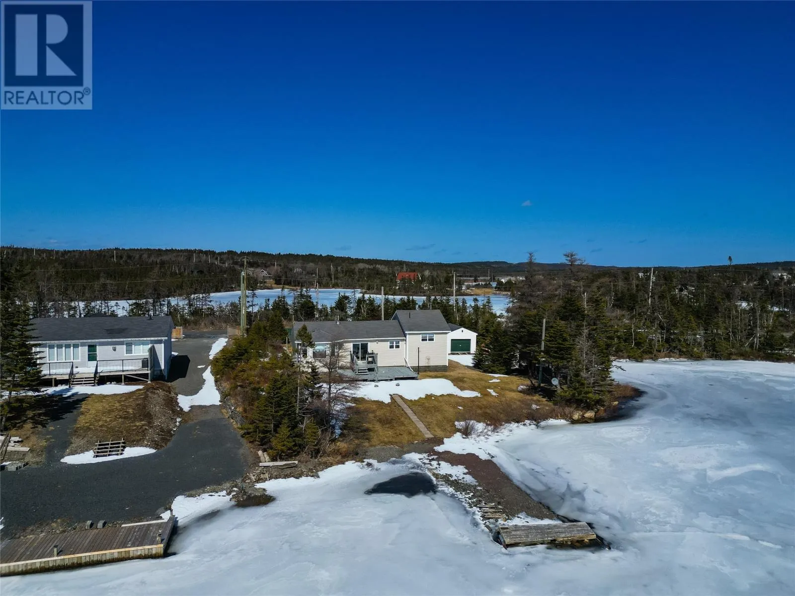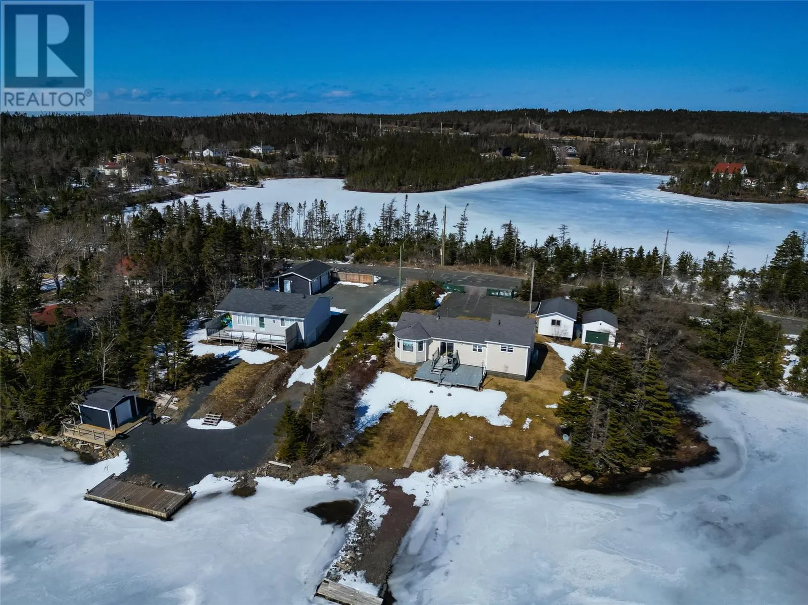 Welcome to your ultimate ~POND FRONT getaway~ where lifestyle, comfort, and convenience come together in one incredible package. This beautifully maintained 1,100 sq ft bungalow offers 2 bedrooms and 1 full bath, perfectly positioned on the water with your own private wharf and 4 auxiliary buildings (garage, boathouse, greenhouse and woodshed). Whether it’s early morning coffees by the pond