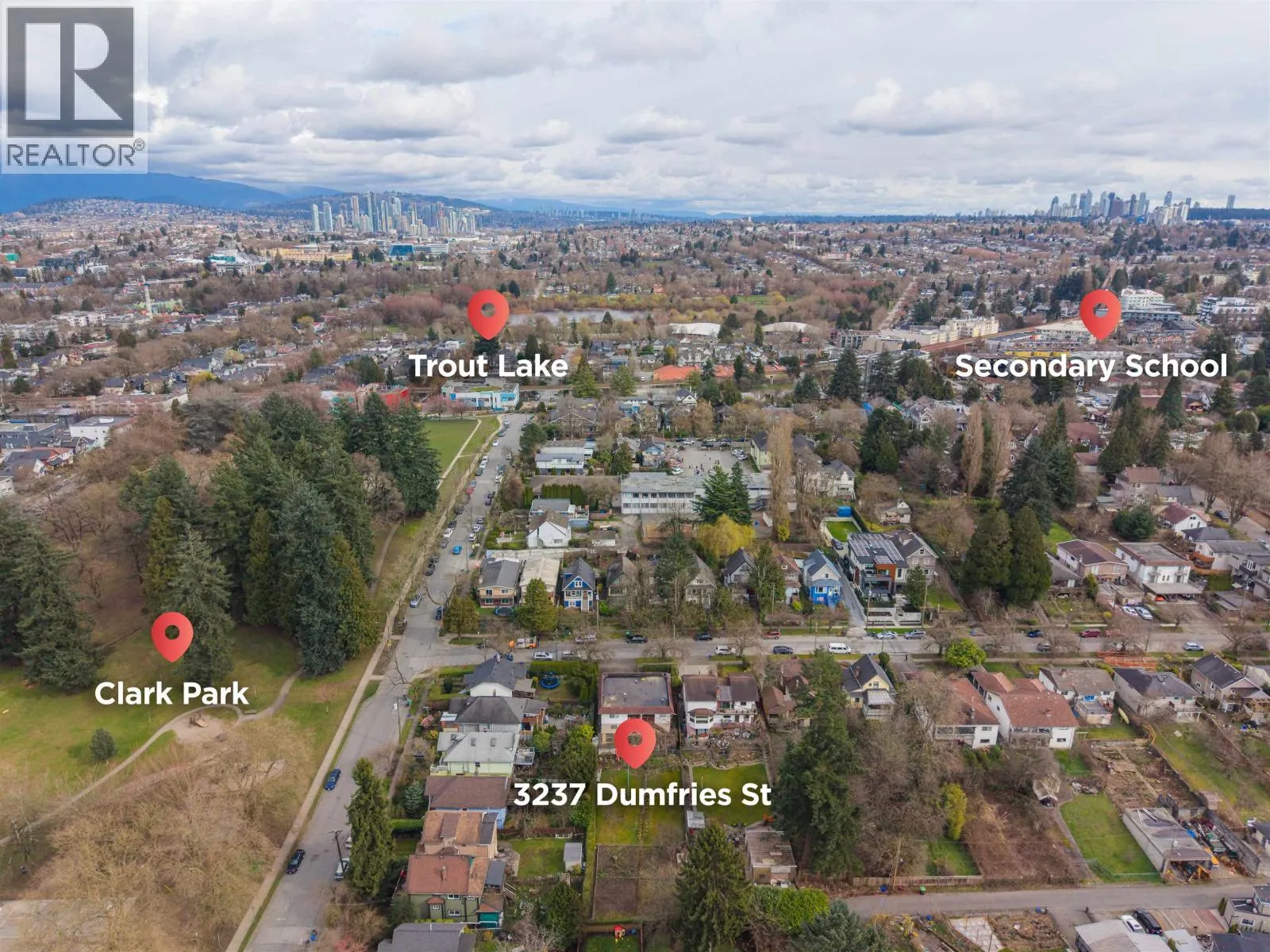 Welcome to an exceptional opportunity to acquire a prime R1-1 lot in the highly sought-after Cedar Cottage neighbourhood, just steps from Clark Park. This property features a desirable west-facing slope, offering stunning elevated views from the front primary residences. An ideal configuration includes two buildings accommodating 4-6 units, complete with rooftop patios and private rear garages. The expansive 56 x