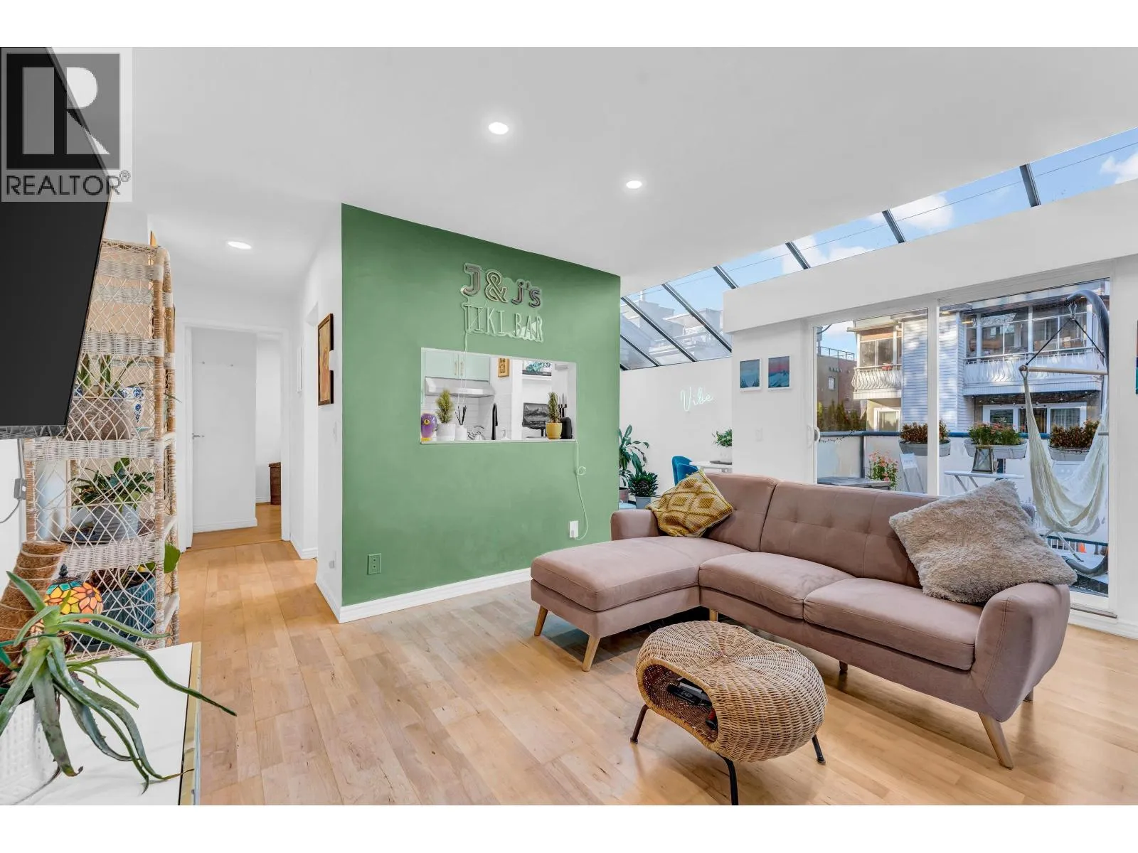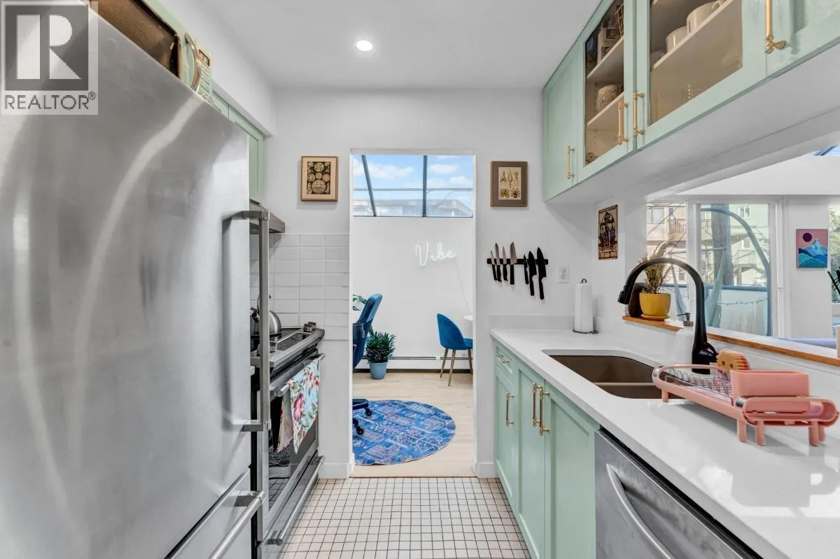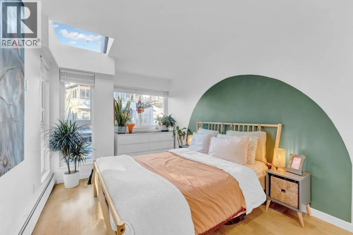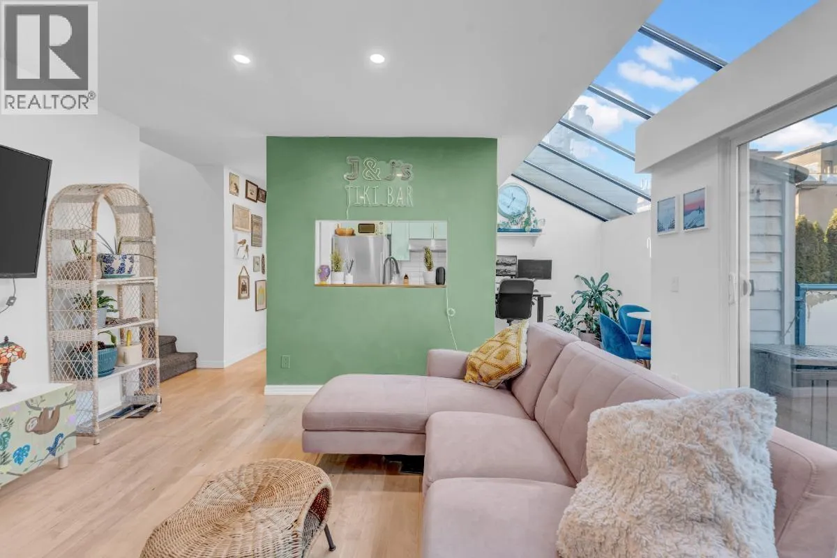 This bright, character-filled one bedroom brings a relaxed beachside energy while feeling warm, cared for, and full of personality. Just minutes from Kits Beach, the space is filled with natural light from skylights and large windows, creating an airy and uplifting feel throughout the day. Vaulted glass ceilings and a wood-burning fireplace add charm and comfort, while the thoughtful use