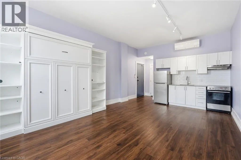 Stylish studio apartment available for lease in the heart of the vibrant James Street North Arts & Culture District. This newly renovated unit comes partially furnished and thoughtfully designed with a Murphy bed frame and built-in shelving to maximize space and functionality. The modern kitchen features sleek stainless steel appliances, and you’ll appreciate the added convenience of in-suite laundry for