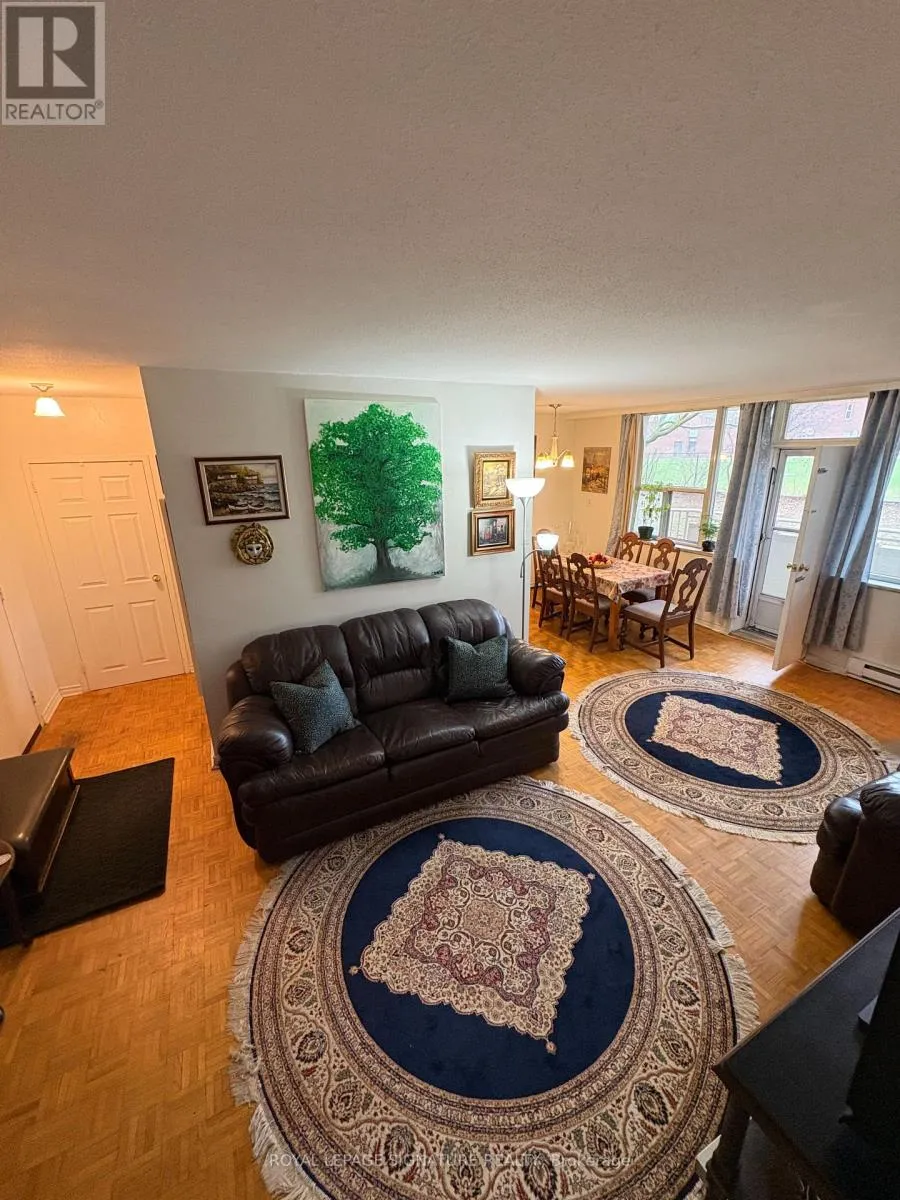 2 bedroom unit in quiet, low rise boutique building surrounded by parks and green spaces. Bath Has been renovated and all interior doors have been replaced. Convenient ground floor unit, no need for stairs or elevator. Fees include: heat, hydro, water, cable and unlimited high speed internet. Perfect for Downsizers and First-Time Buyers. Ideally located close to shopping,mall, highways, subway,