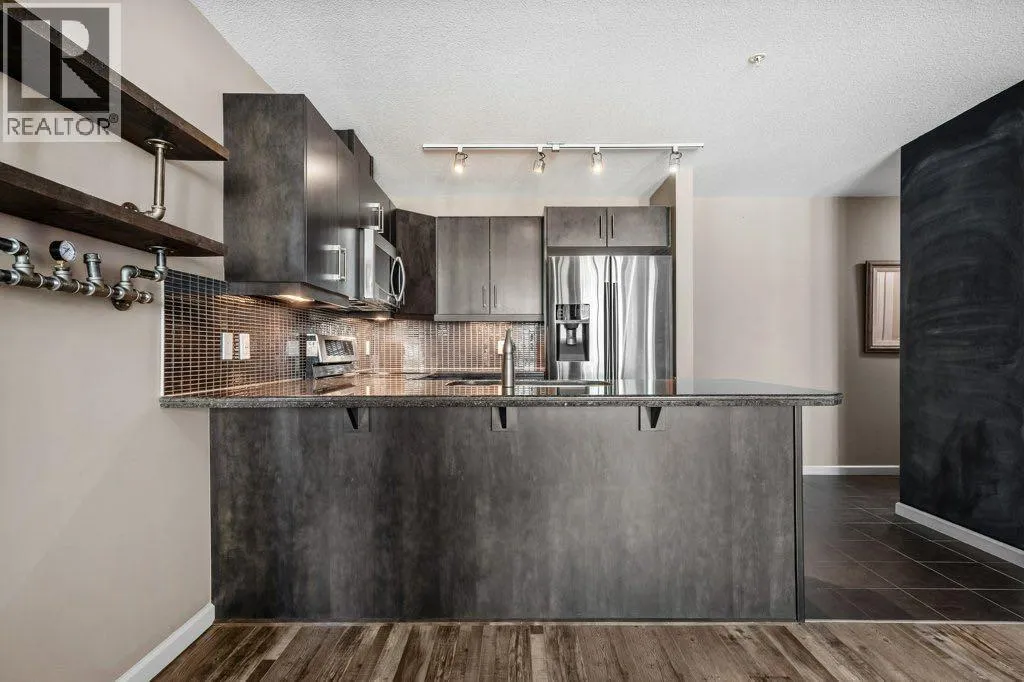 Your urban retreat at VETRO – where value meets presence and lifestyle meets location. Step inside this nearly 1,000 sqft space and feel the tone immediately. A moody, masculine kitchen sets the stage – rich espresso cabinetry, granite counters, stainless steel appliances and a breakfast bar island built for connection. Morning coffees, late-night pours and conversations that linger. Just off