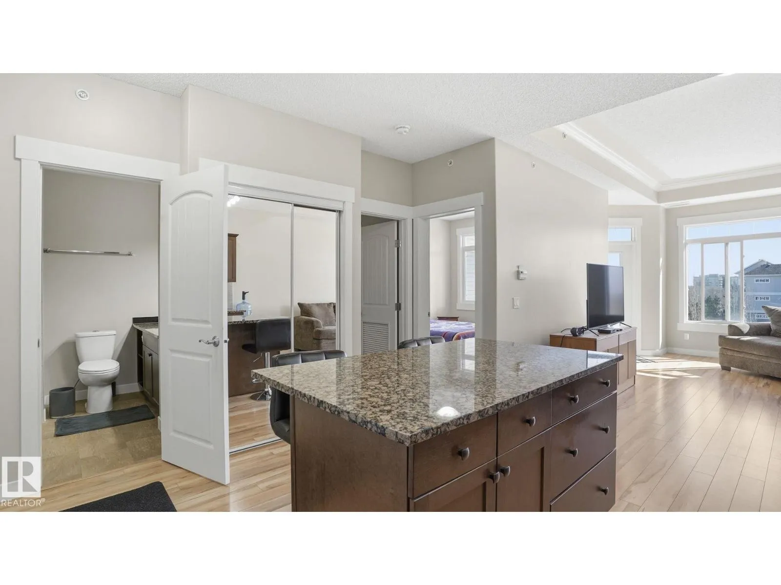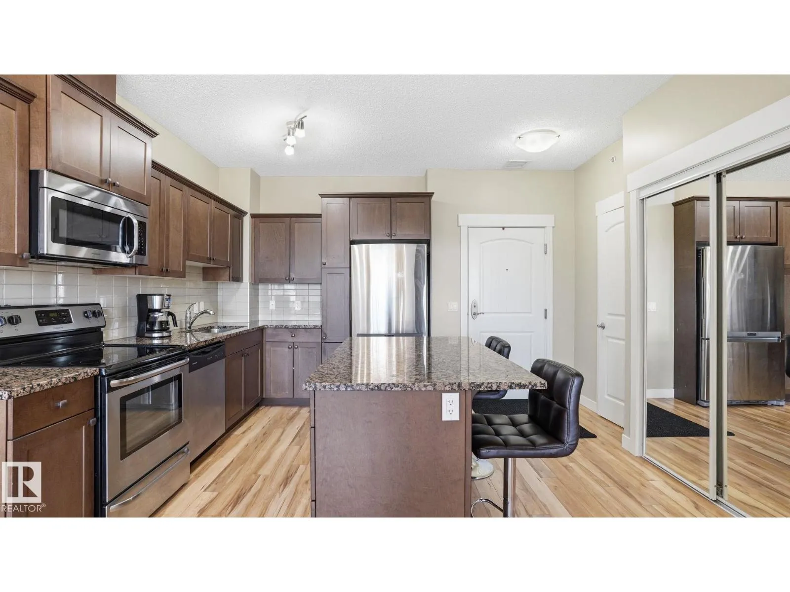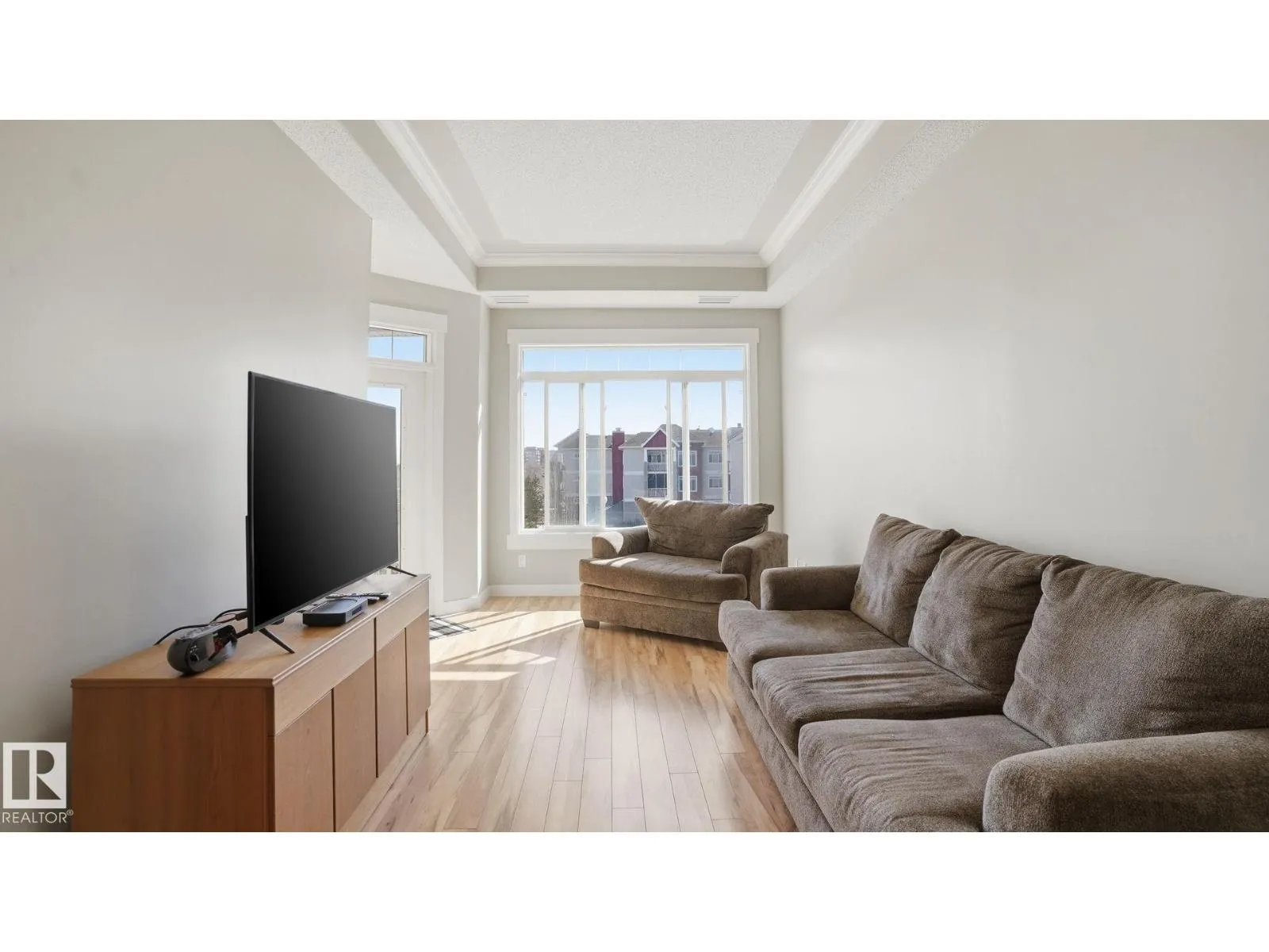 Welcome to WINDSOR ESTATES one of Spruce Grove’s premier 55+ communities. Enjoy top floor living w/this east-facing unit offering peaceful pond views & a bright, inviting atmosphere—perfect for those seeking a relaxed, maintenance-free lifestyle. Ideal for downsizers or those wanting a lock-it & leave-it home base while travelling. Spacious 1-bedroom, 1-bathroom condo w/high coffered ceilings providing a well-designed living space