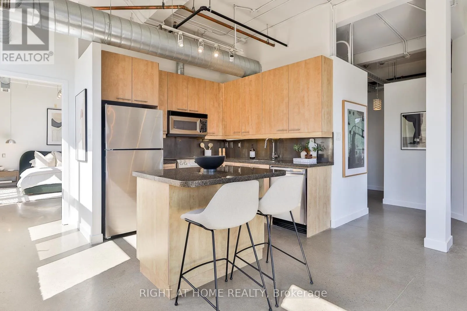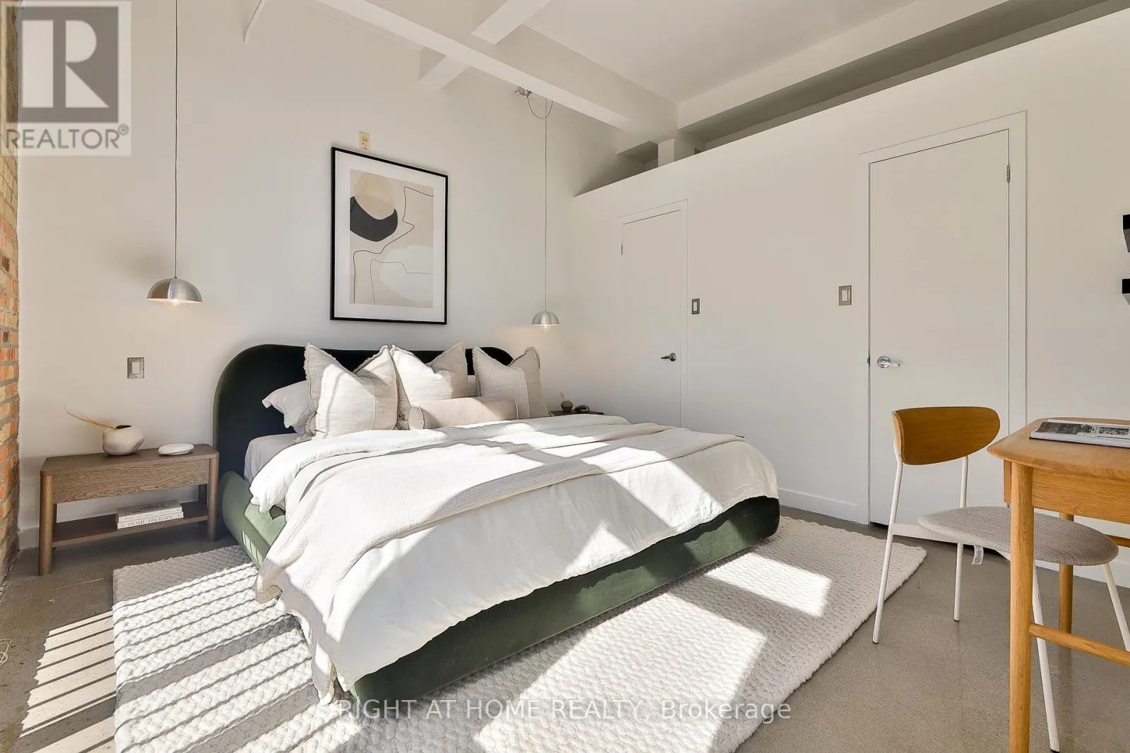 Authentic hard loft living at the iconic Chocolate Company Lofts, directly across from Trinity Bellwoods Park. A rare southwest corner 2-bedroom suite, tucked away from Queen and overlooking a quiet, tree-lined residential pocket – offering the perfect blend of natural light and privacy. Rich in character with exposed brick, original beams, polished concrete floors and soaring ceilings. This thoughtfully designed
