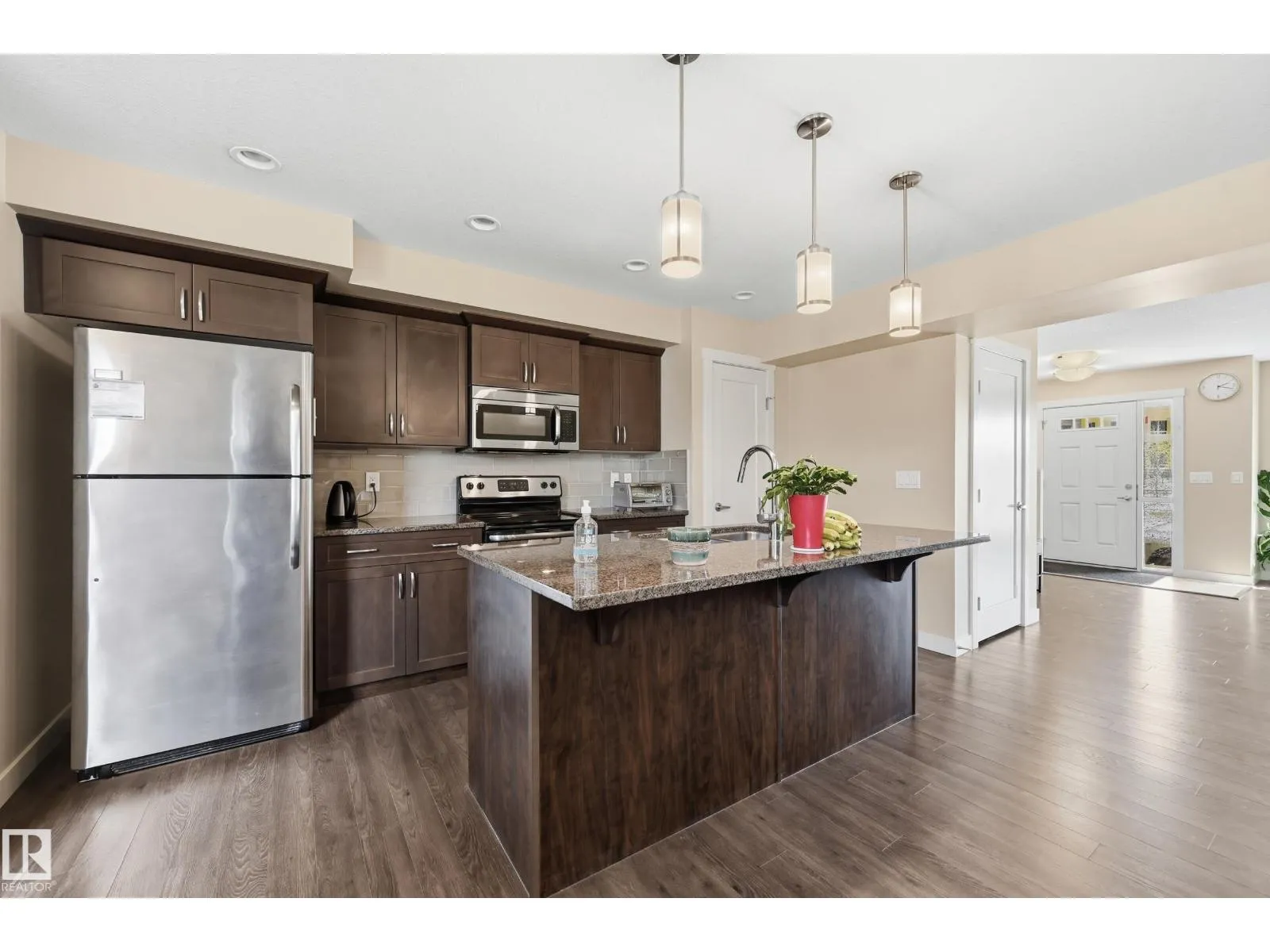 This WELL KEPT 2 storey townhome located in the fast growing neighborhood—ALLARD. Main floor feature open kitchen layout with QUARTZ counter top, looking over the LIVING & DINING room. Upper floor offering a LOFT/BONUS room and 2 MASTER with their own en-suite. Master bedroom has W.I.C. and extra closet plus 4 piece en-suite. The second master room also has 4