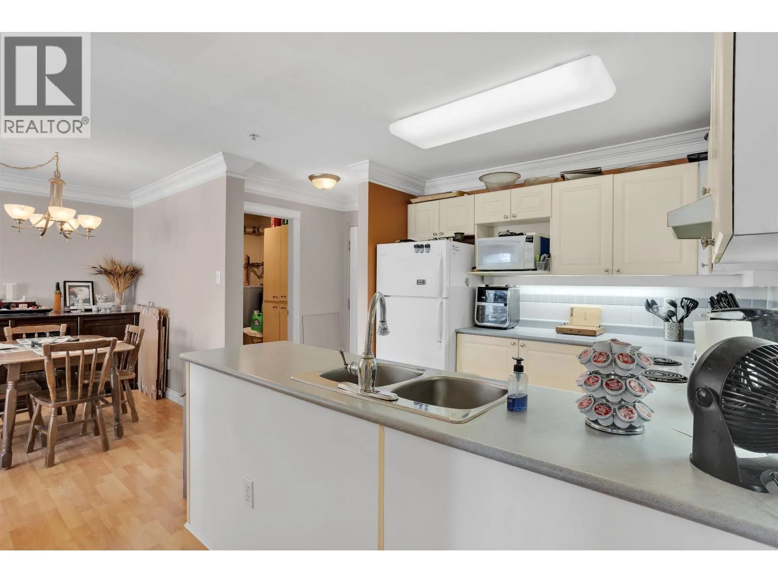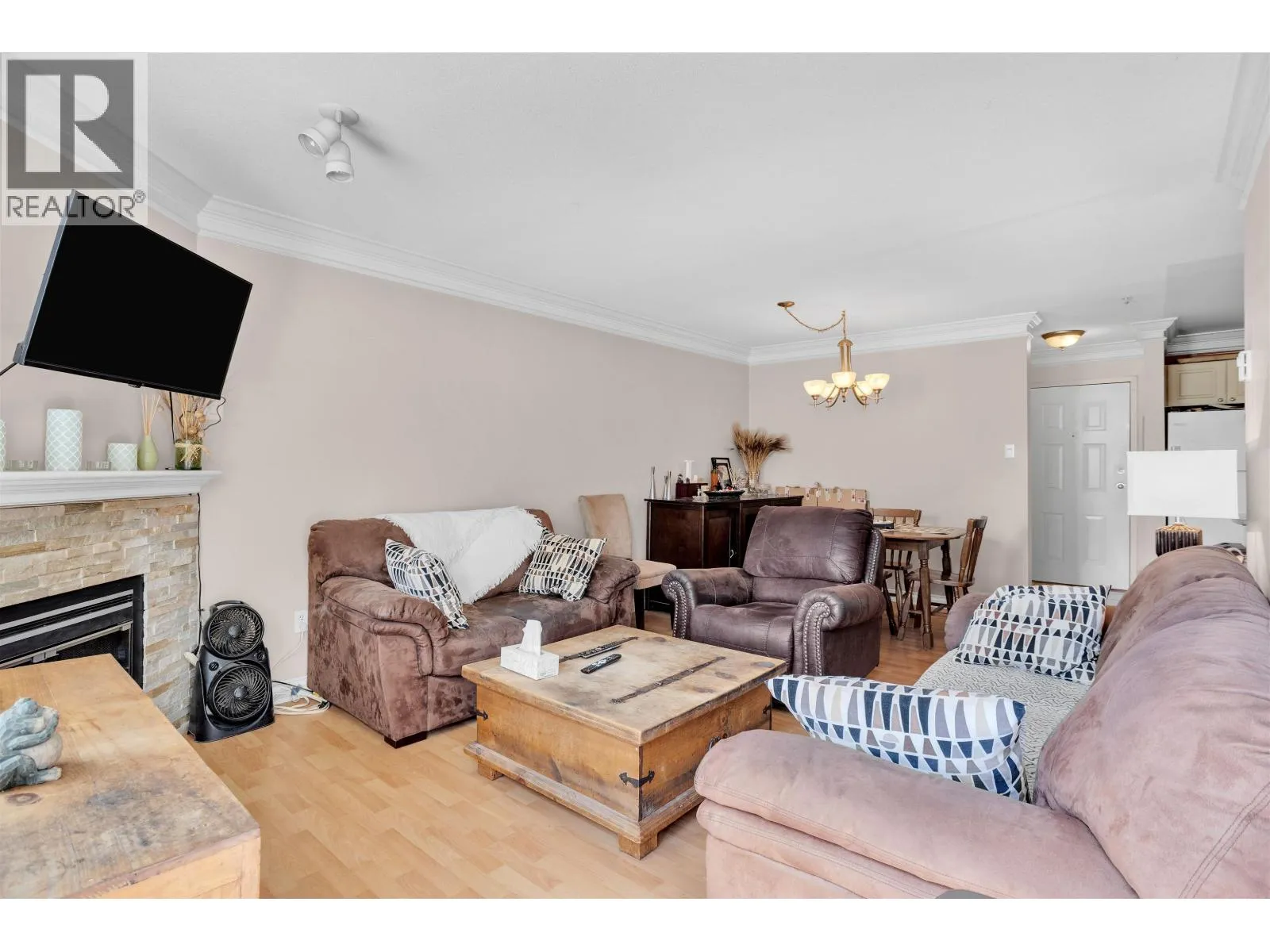 Very spacious TOP FLOOR condo, Offering Two Bedrooms and an Open Floor plan. Nice Size private balcony facing East with a nice view of a quiet cul-de-sac. Home has had some previous updates with laminate floors, two new toilets, hot water tank and crown moulding. Cozy fireplace in your living space. Extra large laundary room with storage and hot water