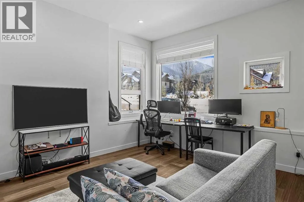 Welcome to 102G – 1200 Three Sisters Parkway, a beautifully designed 1-bedroom condominium in the highly desirable community of Stewart Creek, offering modern mountain living in one of Canmore’s fastest growing neighbourhoods.This thoughtfully laid-out home features over 620 sq ft of bright, open living space with large windows that flood the interior with natural light and showcase stunning mountain views