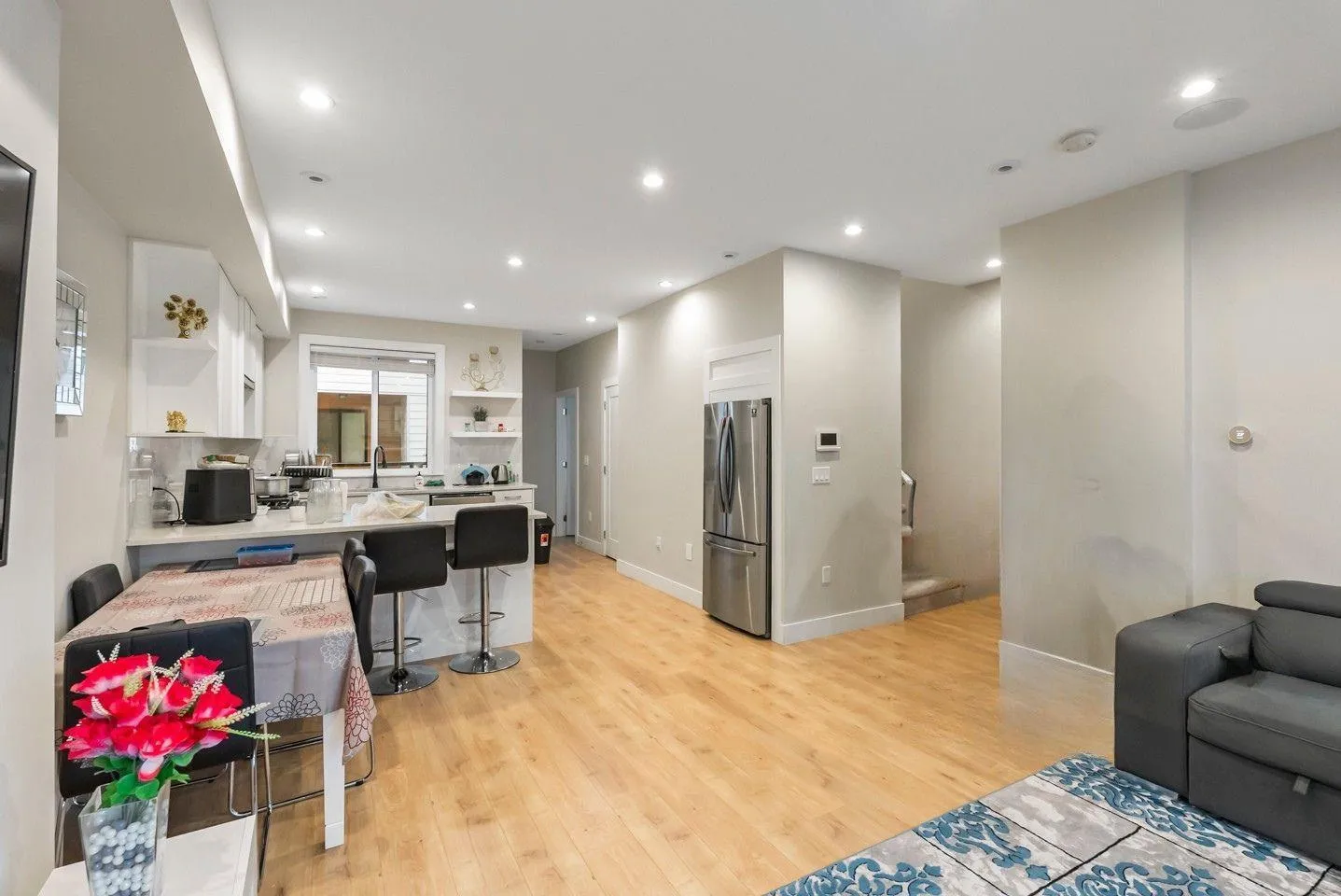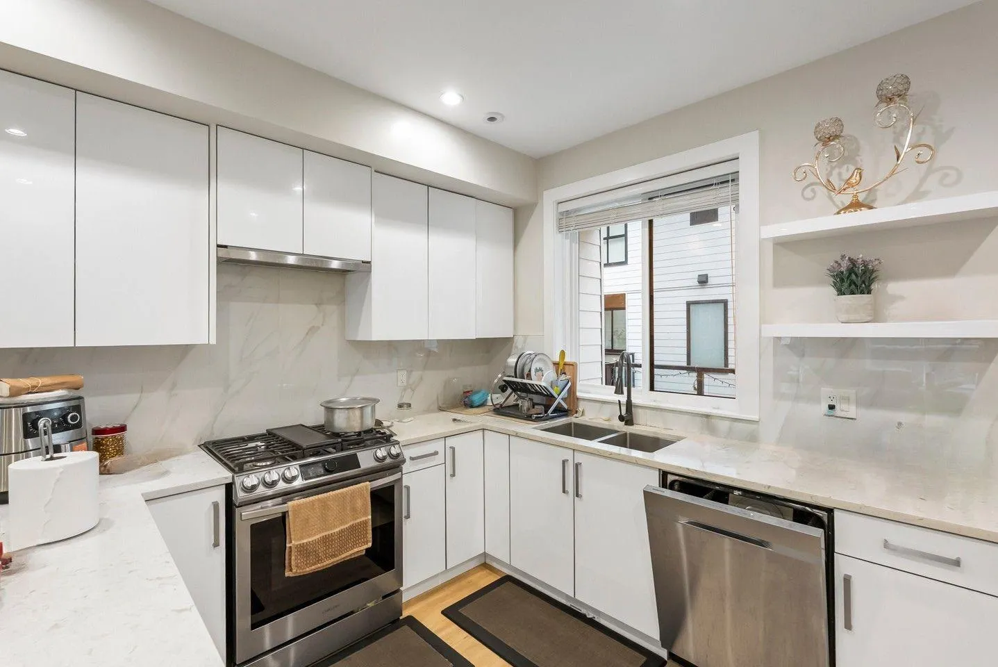Set in the heart of Fleetwood, this 3-bedroom + den townhouse delivers modern living with thoughtful design and incredible outdoor space. The open layout blends a bright living area, electric fireplace, and large windows with a contemporary kitchen featuring quartz counters, gas stove, stainless appliances, soft-close cabinetry, built-in microwave, and a walk-in pantry. Upstairs, all three bedrooms sit together, including