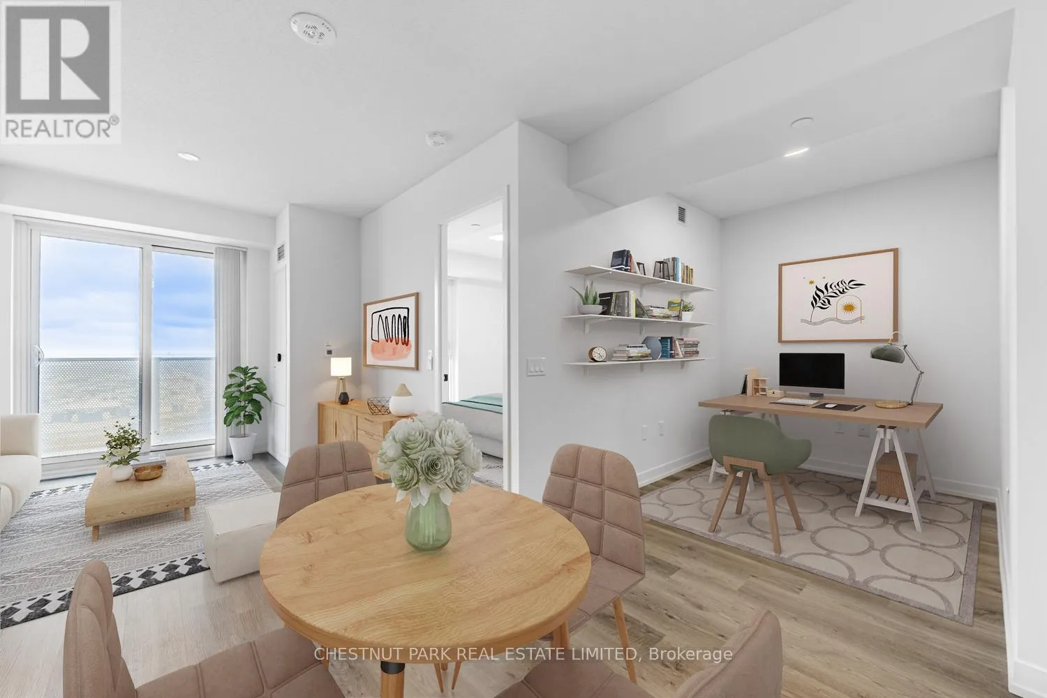 1 Bedroom + Den *Includes Parking + Storage Locker* at Festival Condos, and clear west exposure. Open concept layout featuring laminate flooring throughout, spacious den and modern finishes. Kitchen features quartz countertops and backsplash and stainless steel appliances. Building features a spacious fitness centre with spin room, hot tub, dry & steam saunas, and cold plunge pool, outdoor terrace, pet