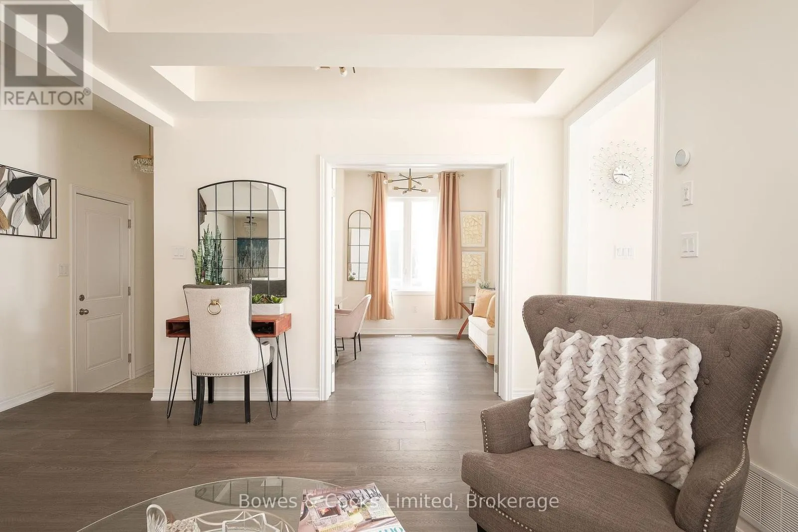Welcome to 203 O’Neil Street – a stunning 2024-built Warrington Model offering 2,490 sq. ft. of modern, thoughtfully designed living space. This 4-bedroom, 4-bathroom home features a bright open-concept main floor with 9′ coffered ceilings, a spacious family room with gas fireplace, and a large eat-in kitchen complete with quartz countertops, ample cabinetry, and brand new stainless steel appliances. Upgraded