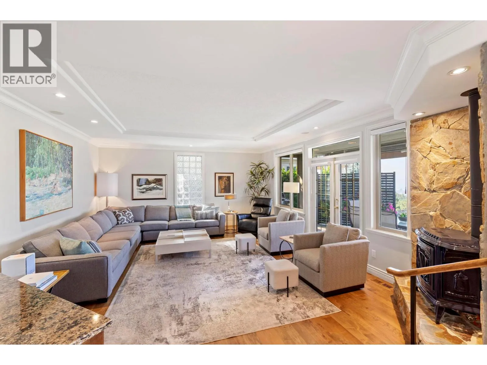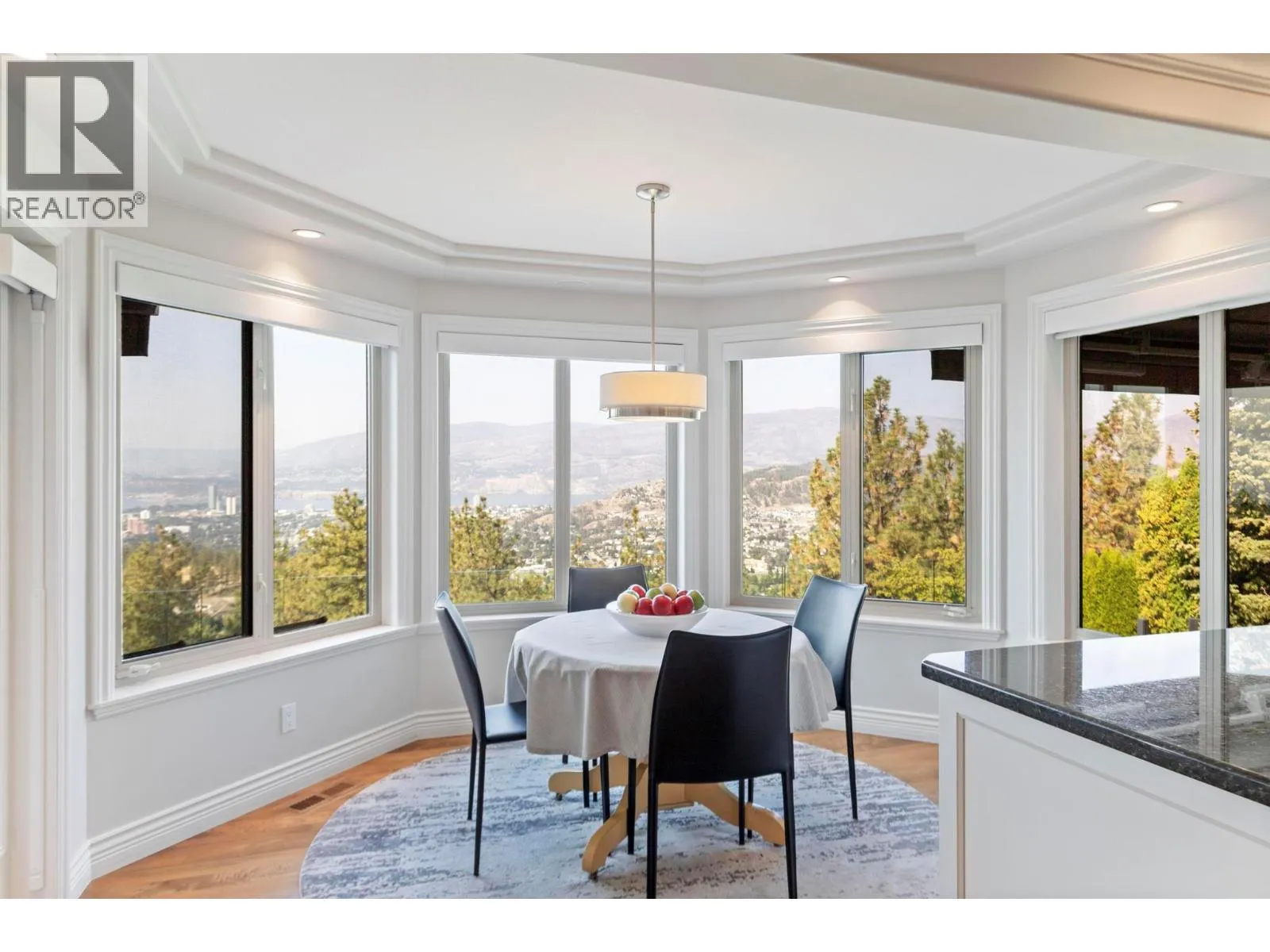 Prestige, scale, and breathtaking views define this custom-built estate on one of Kelowna’s most coveted streets atop Dilworth Mountain. Originally built as the builder’s dream home, every detail reflects quality and timeless design. With over 6,300 sq. ft., 6 bedrooms plus a den, and 5 bathrooms, this residence showcases exceptional craftsmanship with tray and coffered ceilings, crown moldings, and superior