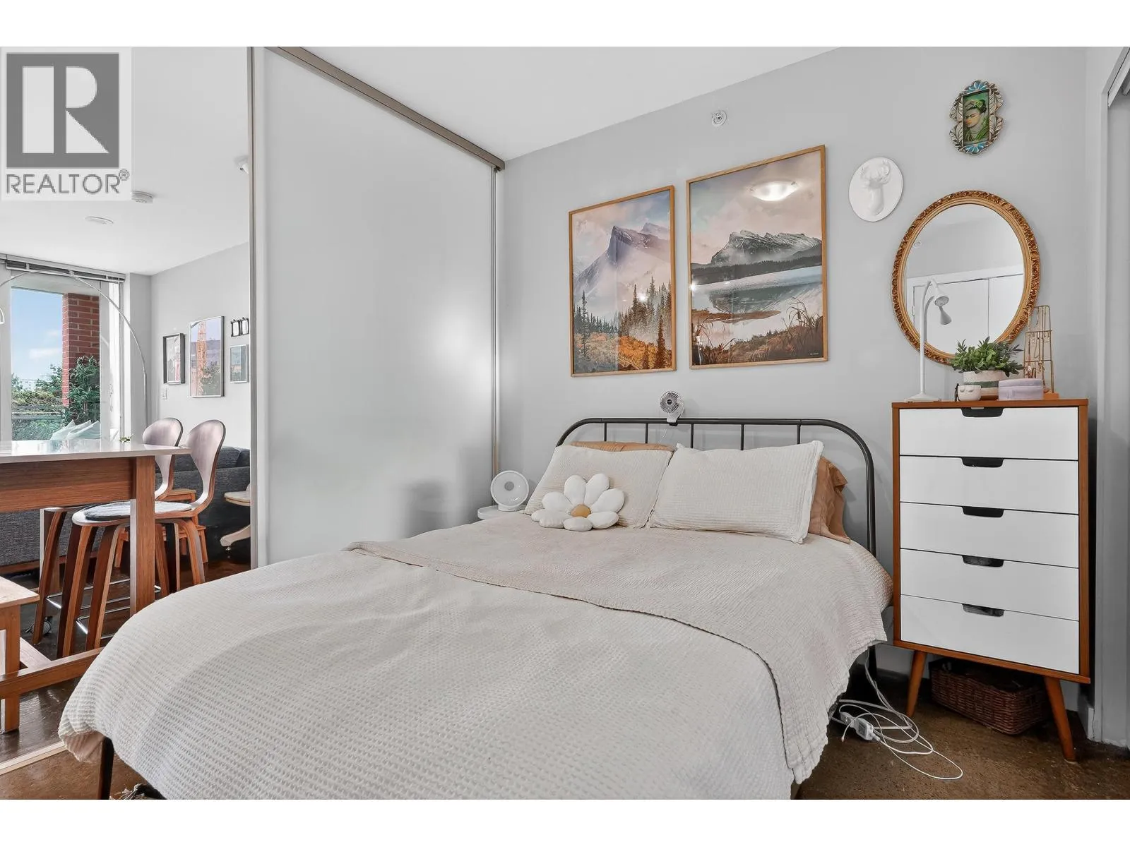Loft-inspired living in V6A at the heart of Strathcona/False Creek Flats. Sun-soaked S-facing 1 bed with soaring ceilings, oversized windows & an open layout that lives much larger than its 690 sqft. Chef-friendly kitchen with quartz counters, s/s appls & smart storage flows into a versatile lounge/dining/WFH zone. Tucked-away bdrm, in-suite laundry, secure parking & locker. Concrete building offers gym,