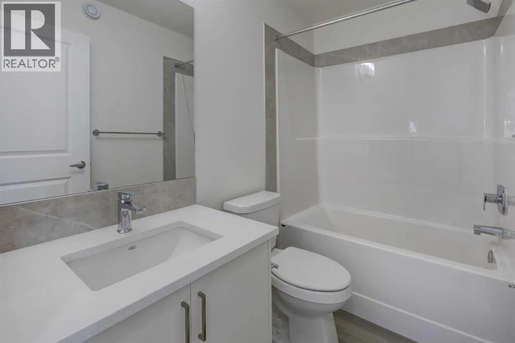 for families to grow. Just outside your front door, thoughtfully designed pathways lead to parks, natural spaces, and transit connections. With quick access to Stoney Trail and major routes, getting around the city, or out of it, is easy. Introducing the COHEN: an amazing, BRAND NEW attached home by EXCEL HOMES offering 1750 SF above grade with a FULLY DEVELOPED, LEGAL SUITE, W/SEPARATE ENTRANCE, TWO BEDROOMS AND FULL KITCHEN. Step into a life of luxury and convenience with this stunning residence, where every detail has been meticulously crafted for comfort and style. The open floor plan, complemented by neutral designer tones, creates a welcoming atmosphere that is both elegant and comfortable. The chef-quality kitchen stands as the heart of the home, equipped with ceiling-height cabinets, two banks of pot/pan drawers, and upgraded stainless steel appliances, including chimney fan and built-in microwave. The expansive engineered stone countertops, a large island with seating, and a convenient pantry make it a dream kitchen for those who love to cook and entertain. The main floor also uniquely features a 4th bedroom & a 4 pce bathroom. Ascend to the second level where leisure meets luxury in the large central bonus room featuring vaulted ceilings & pot lighting — ideal for movie nights and family gatherings. The primary bedroom is a true retreat, boasting a walk-in closet and a spa-like ensuite with dual sink & stone vanity tops. Additionally, two more generously sized bedrooms provide ample space and easy access to the main bathroom. The convenience cont inues with a laundry room strategically located on the same floor. The possibilities extend into the FULLY DEVELOPED basement – SEPERATE SIDE ENTRY to your LEGAL TWO BEDROOM BASEMENT SUITE. Your suite is built to upstairs standards & offers TWO bedrooms, 4 pce bathroom, full kitchen w/lots of storage cabinets, SS appliances, PRIVATE LAUNDRY, vinyl plank flooring. This is a certified BUILT GREEN HOME WITH GOLD RATING. This home comes with all the built green features that makes Excel Homes a wise choice. Front yard sod is included. (id:62650)