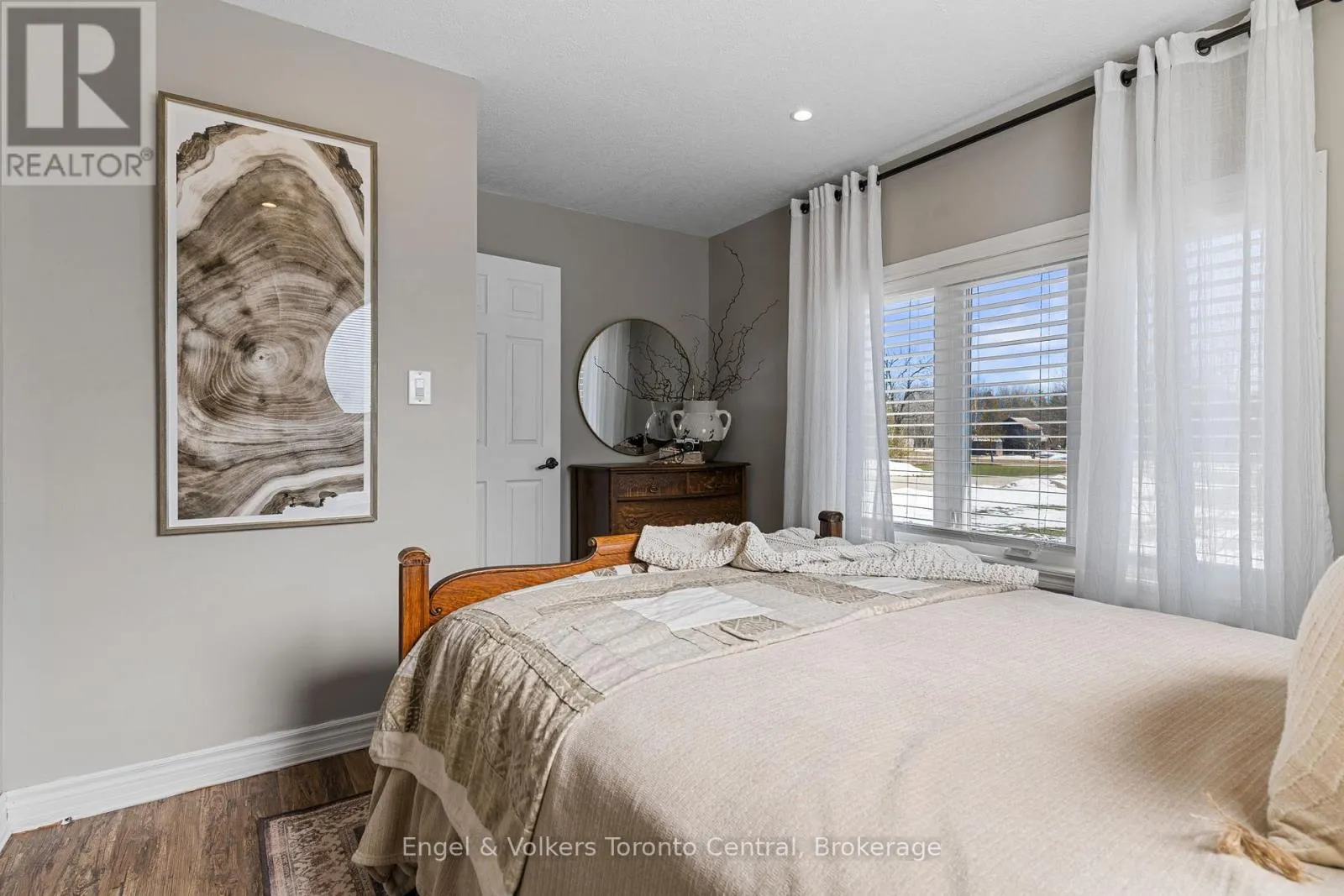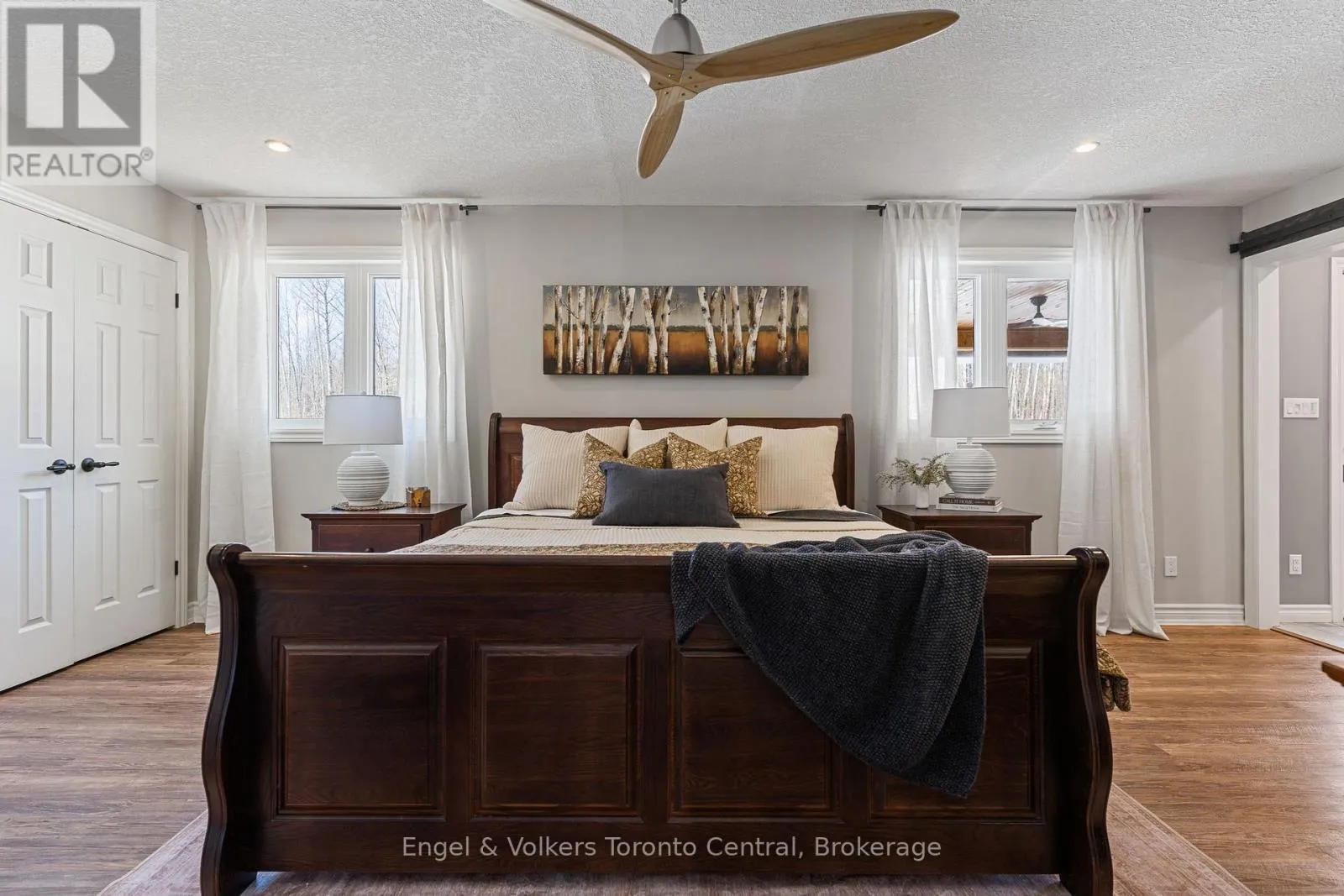 Indulge in Refined Country Living. This stunningly renovated bungalow, set on a private five-acre woodland, offers an unparalleled lifestyle of luxury and tranquility. The gourmet kitchen is a culinary masterpiece, boasting high-end stainless steel appliances and durable, elegant Cambria Quartz countertops. The open-concept layout flows beautifully into a grand living area with a breathtaking 13-foot vaulted ceiling and a striking