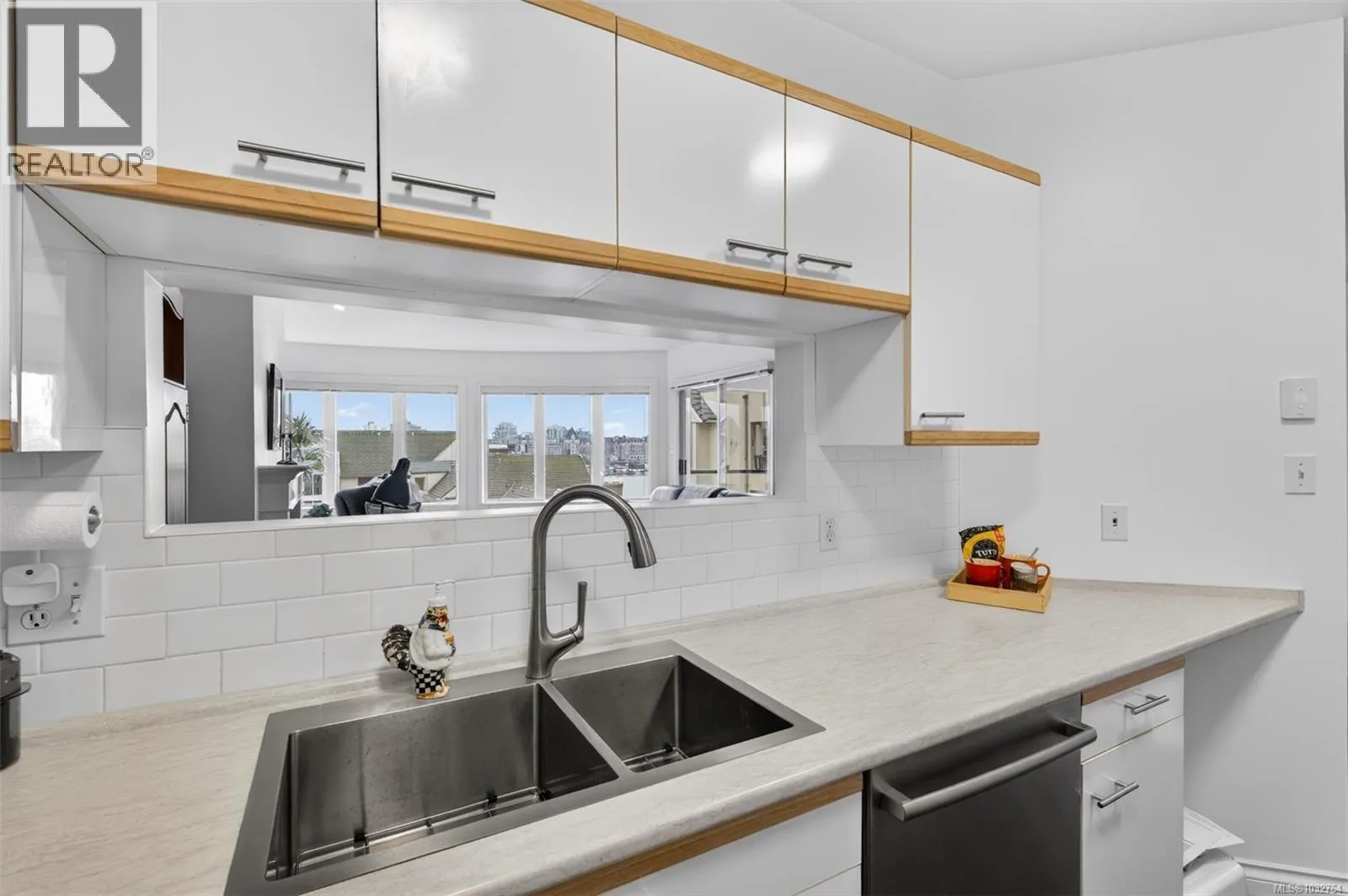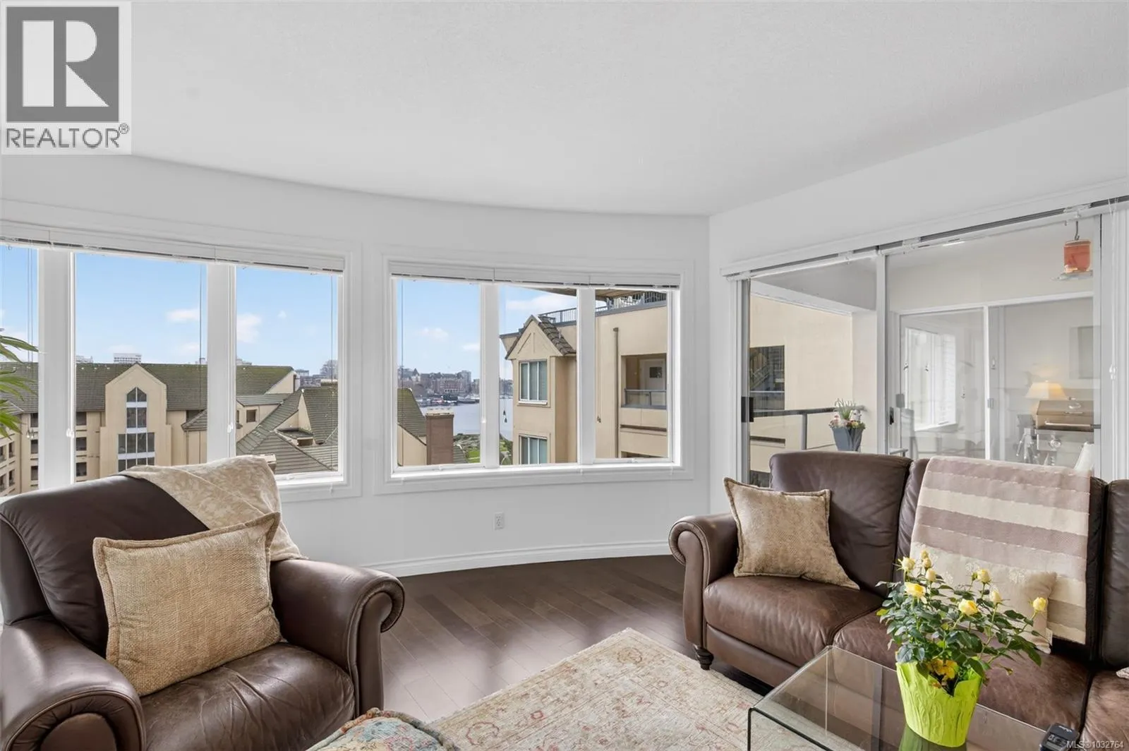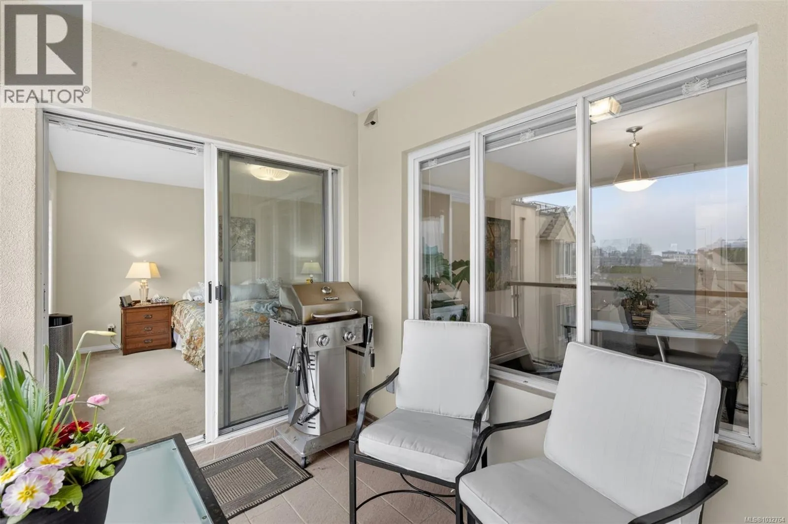 Quiet central Victoria condo with sea breezes & one of five top floor suites with access to a spectacular rooftop deck. This spacious 2-bed, 2-bath condo offers over 1,400 sq ft of light-filled living with high ceilings, a gas fireplace, & a private balcony where BBQs are allowed. Open layout with kitchen flowing into the living & dining areas. The