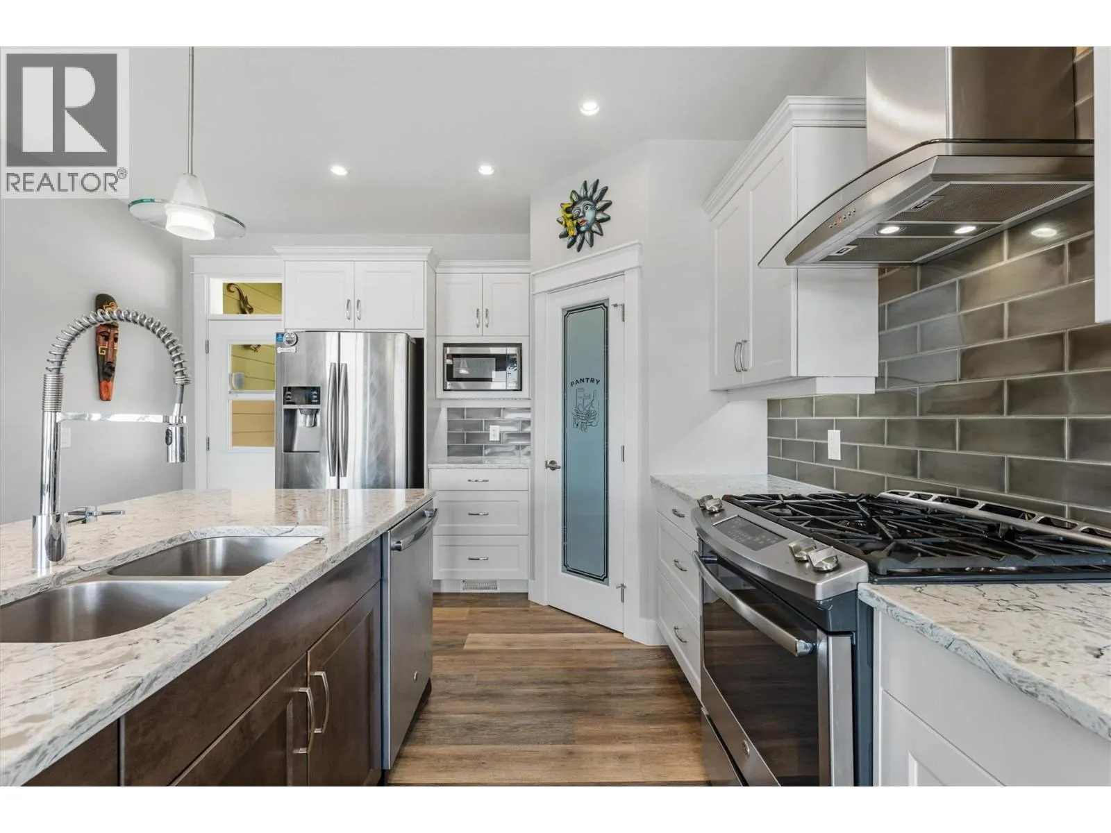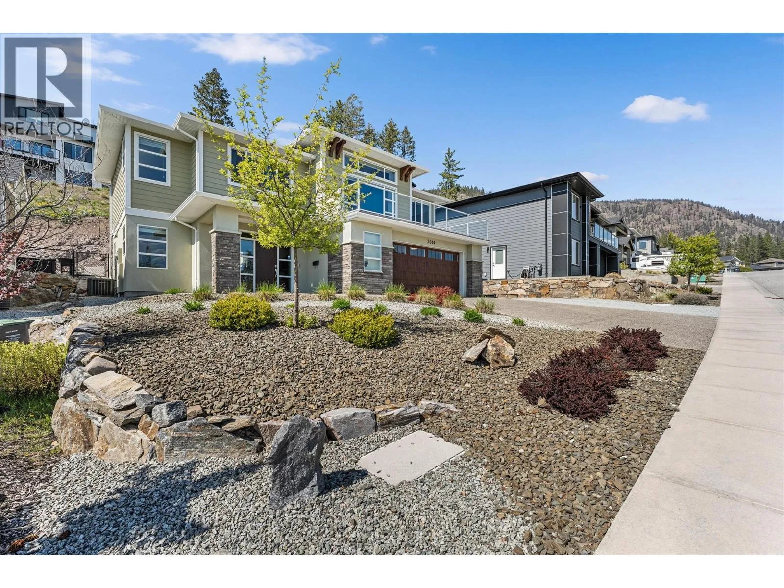Perched above the vineyards in one of West Kelowna’s most sought-after neighbourhoods, this beautifully designed home showcases sweeping lake and mountain views that truly set it apart. Expansive windows flood the open-concept main level with natural light, while vaulted ceilings and a gas fireplace create a warm, inviting sense of space. The kitchen blends everyday functionality with refined style, featuring