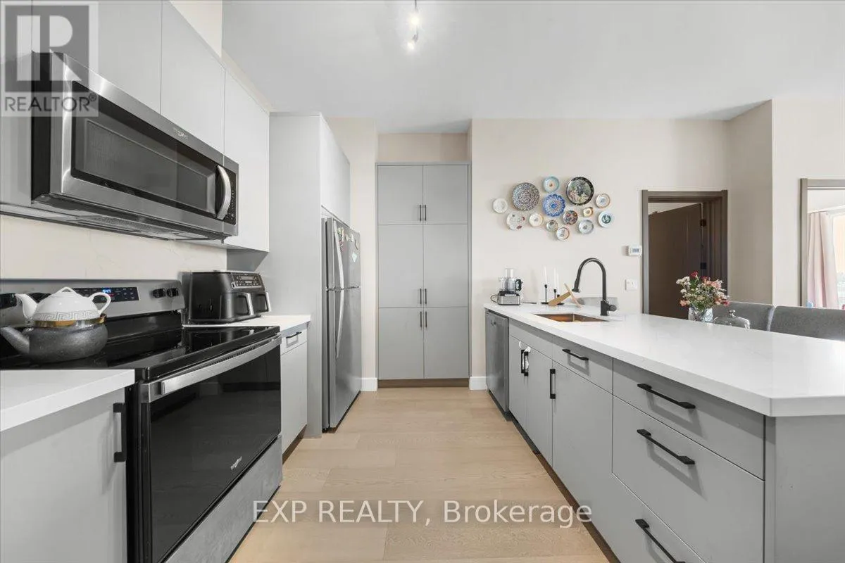Ideal location in Kanata Lakes, walking distance to shops, grocery stores, restaurants, Cinema, walking trails and kids clubs. Sun filled suite with the best view in the building and 9 foot ceilings. 1150 Sq ft 2 bedrooms, 2 bathrooms, quartz countertops, spacious living room, primary bedroom has 2 walk-in closets, tiled marble showers, In Suite Laundry Machines,. Amenities include Rooftop