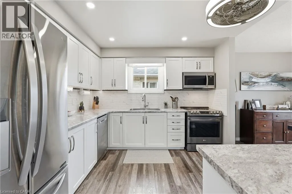 A beautifully maintained raised bungalow set on a quiet, family-friendly crescent in one of Brantford’s sought-after North End neighbourhoods. This meticulously cared-for home impresses with its warm brick exterior and an impressive, oversized backyard perfect for family enjoyment. The renovated kitchen features crisp white cabinetry, and stainless steel appliances, flowing into bright open-concept living and dining areas.Step outside to a