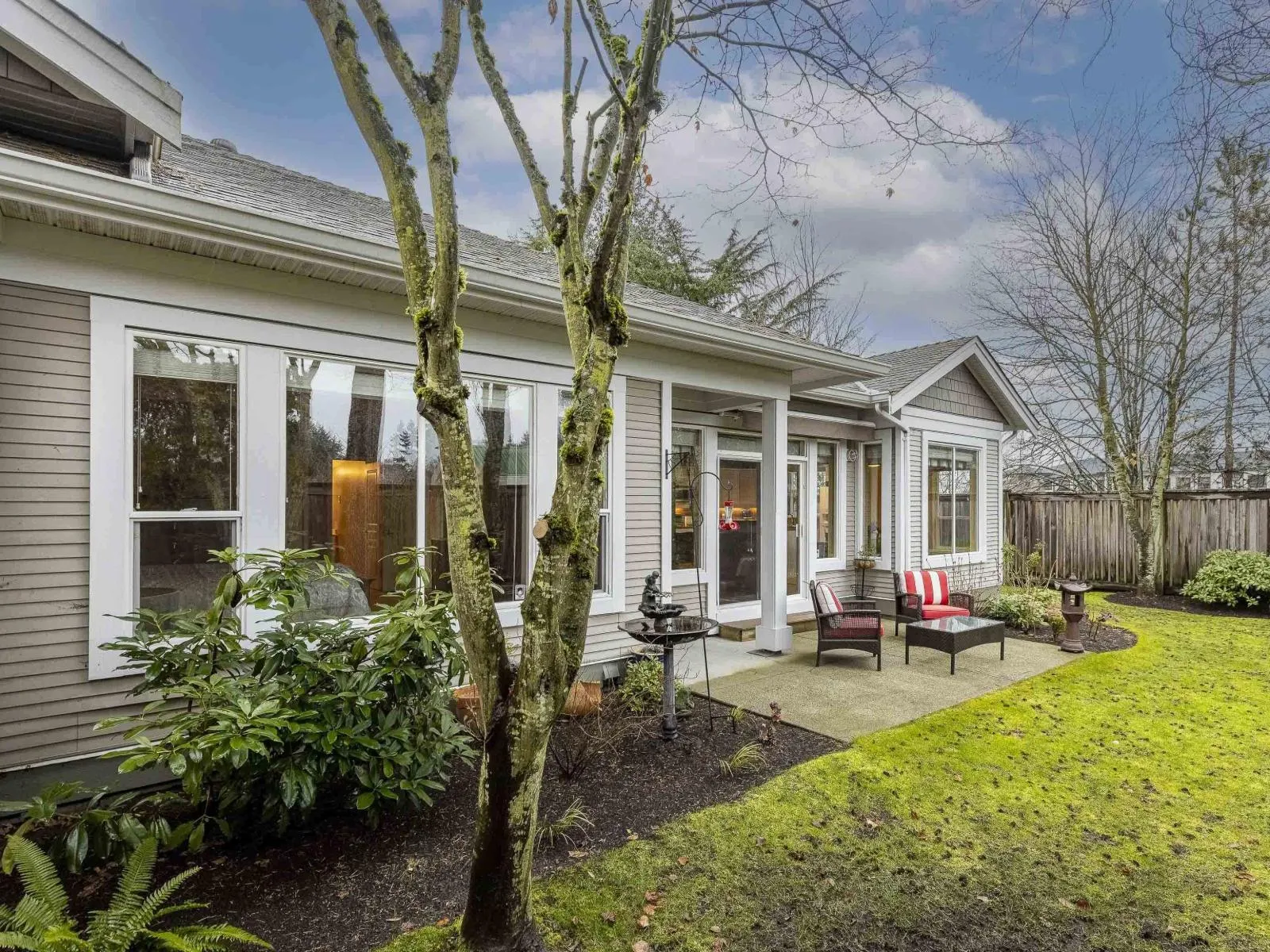 Tucked into one of the most private settings within The Crescent, this duplex-style townhouse stands apart with its generous yard, with an adjacent side yard that naturally extends the outdoor space and offers added flexibility for outdoor living. Meticulously maintained, it features a spacious main floor primary bedroom and principal rooms-living and dining-large enough for house-size furniture. The kitchen offers