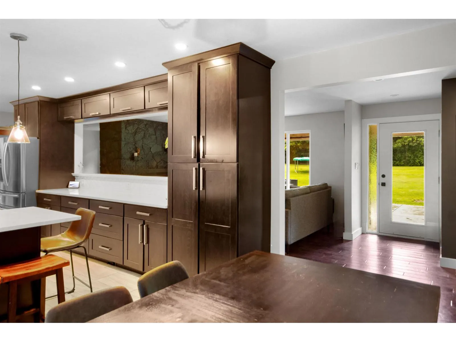 Fully renovated 2200sqft RANCHER on 3.6 private acres in Bradner, Abbotsford. Gorgeous hand-scraped oak floors throughout + HEATED kitchen & bath floors. GAS Range, 2 fireplaces, NEW-windows, furnace, hot water tank, lighting, trim, doors & more-all on one bright, accessible level. Large windows showcase park-like grounds and mature trees+skylights for tons of natural light w/14’x34′ deck overlooking scenic trails. Detached