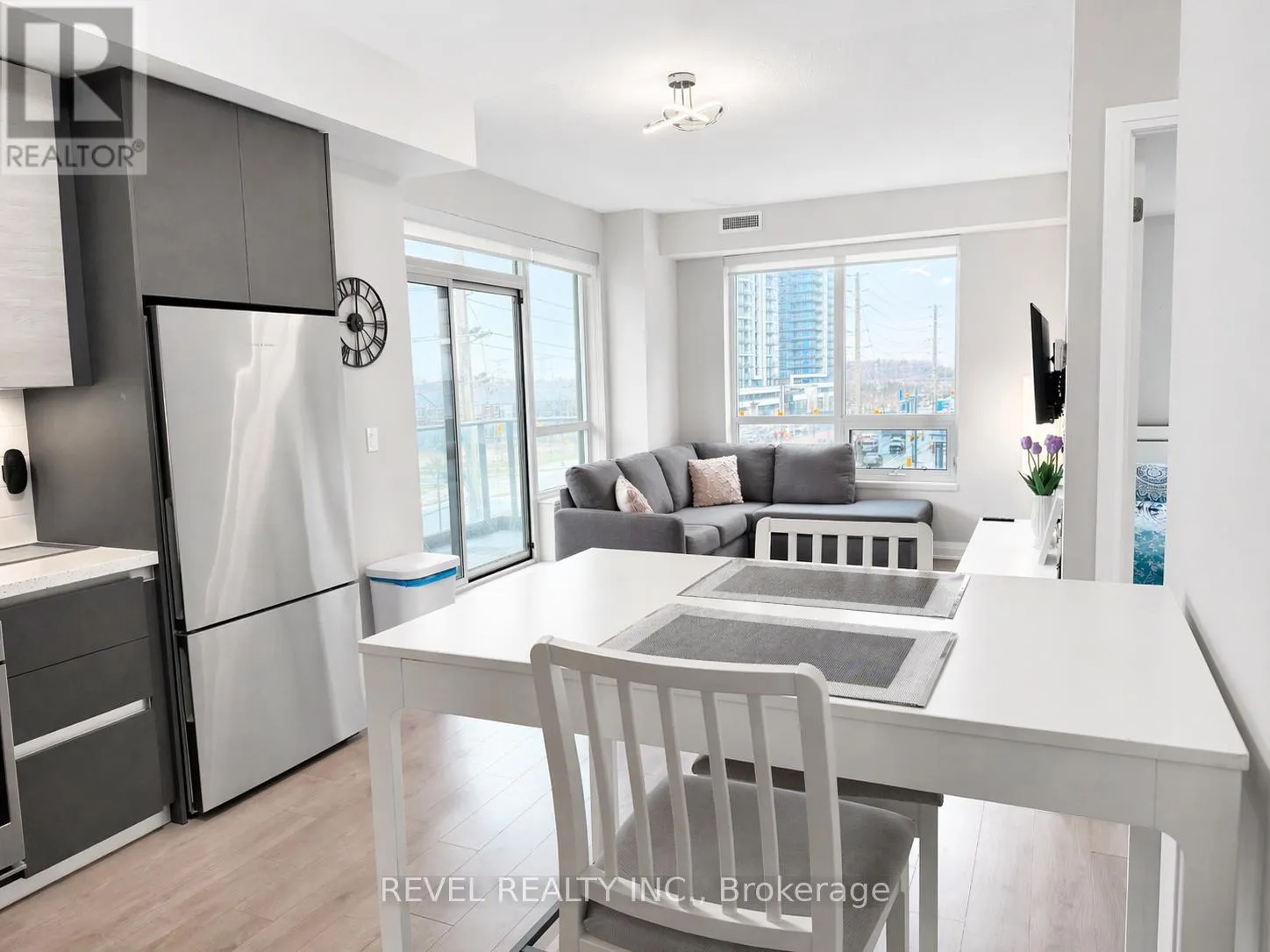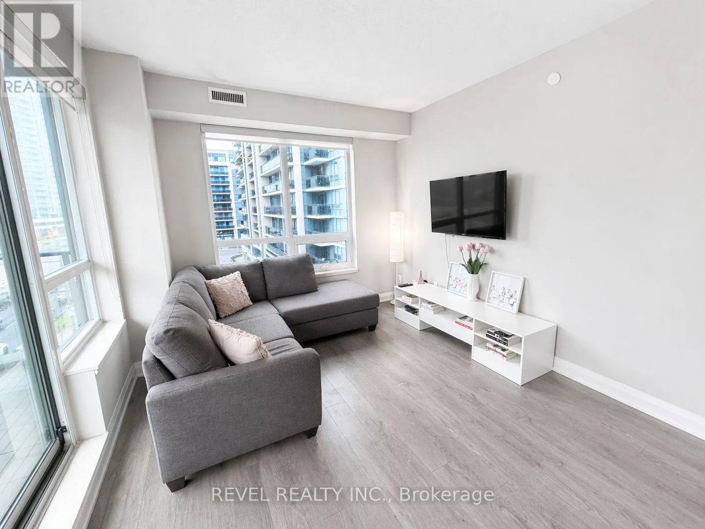 Step into refined condo living at Valleymede Towers. This rarely offered corner suite offers just under 1,000 sq ft, featuring 2 bedrooms, a versatile den, and 2 full bathrooms. Available fully furnished, it provides a seamless, move in ready experience. The bright southwest exposure fills the open concept layout with natural light, complemented by 9 foot ceilings and a private