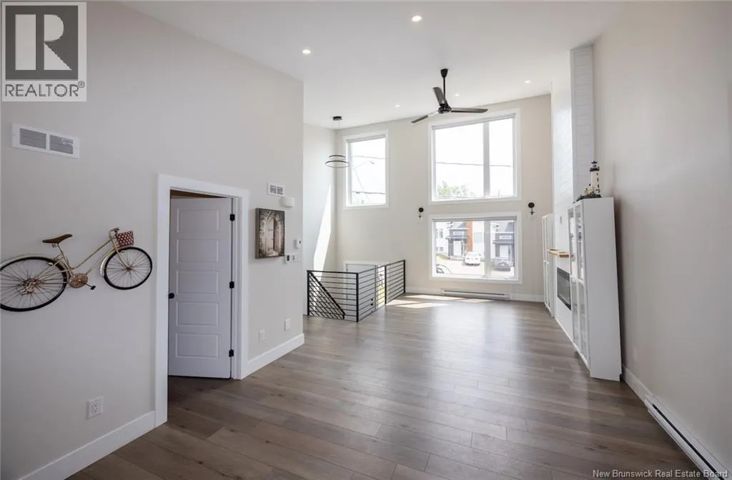 Stylish, modern, and move-in ready! This stunning end-unit townhome boasts 16-ft cathedral ceilings, large windows, and a sleek architectural design that maximizes light and space. The open-concept main floor features a bright kitchen with centre island, beautiful finishes, and all appliances included. The dining and living areas flow seamlessly, highlighted by a shiplap accent wall and built-in electric fireplace. A