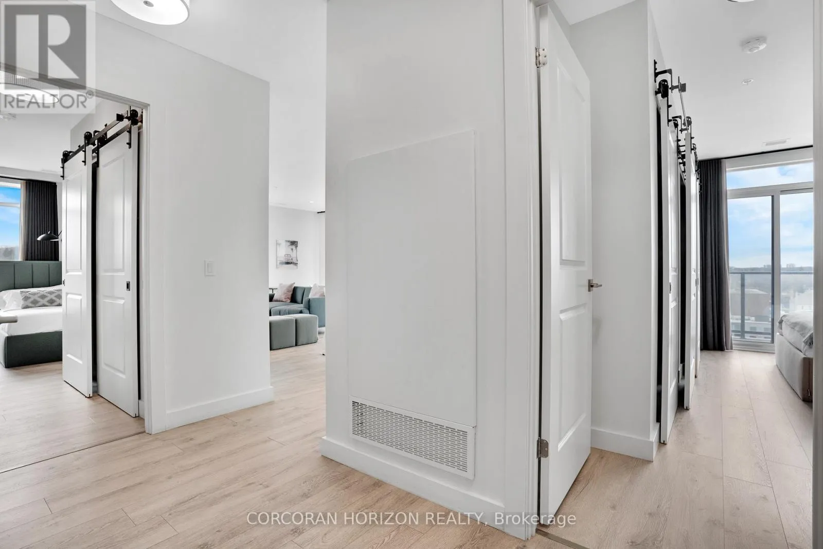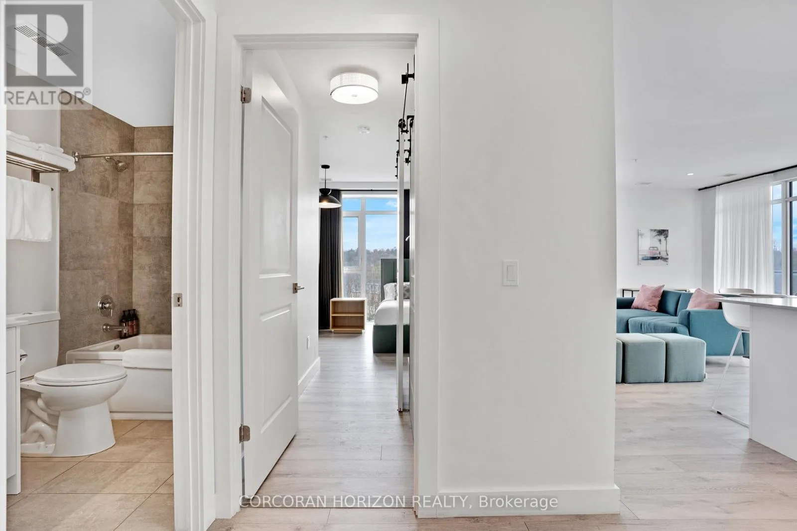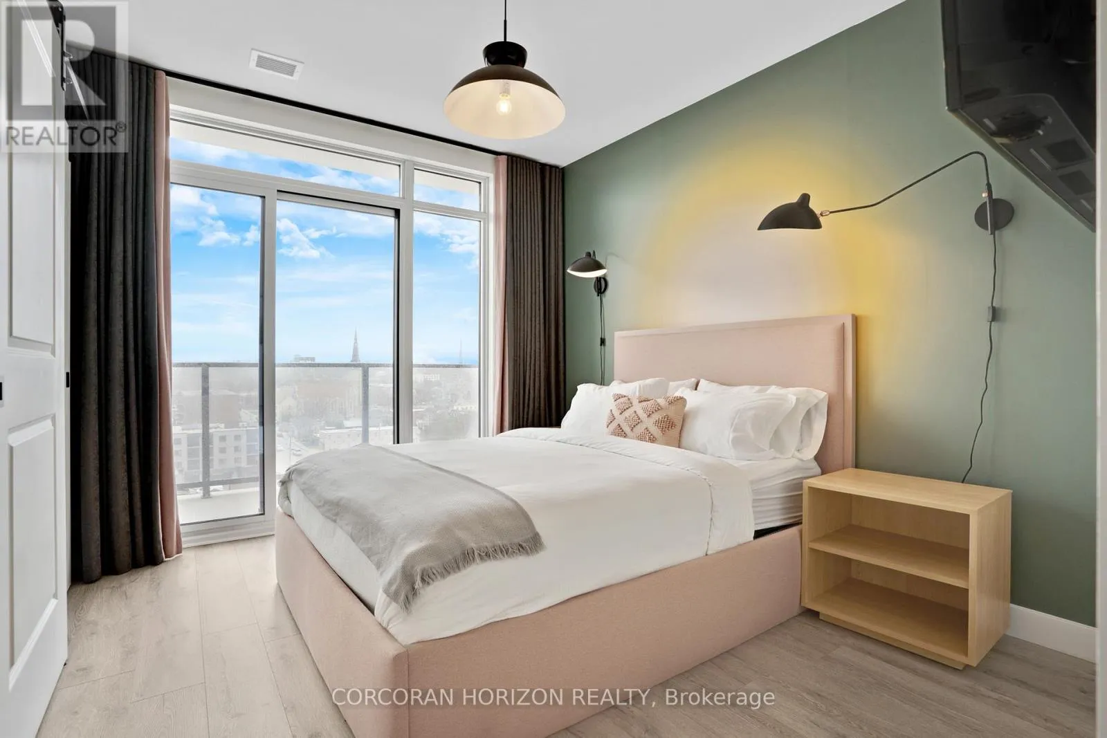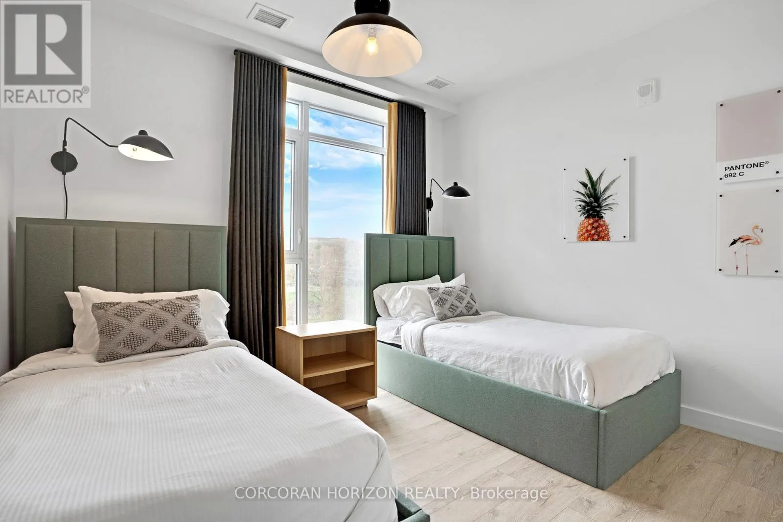 Unit 802 at 15 Glebe Street is a beautiful fully furnished 2-bedroom, 2-bathroom condo in the heart of Cambridge’s Gaslight District, offering 1,126 sq. ft. of comfortable living space with views of the city. The open-concept layout is complemented by 9-foot ceilings that give the space a bright, generous feel throughout. The kitchen and dining area feature shaker-style cabinetry, quartz