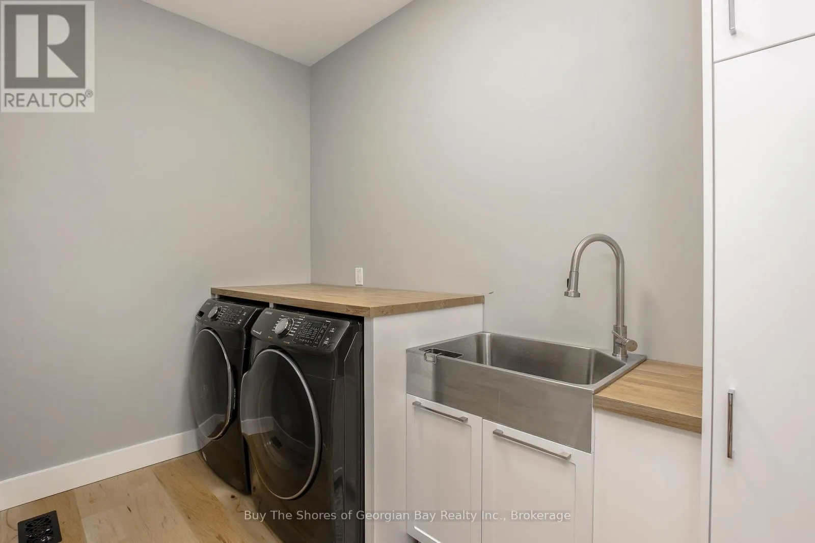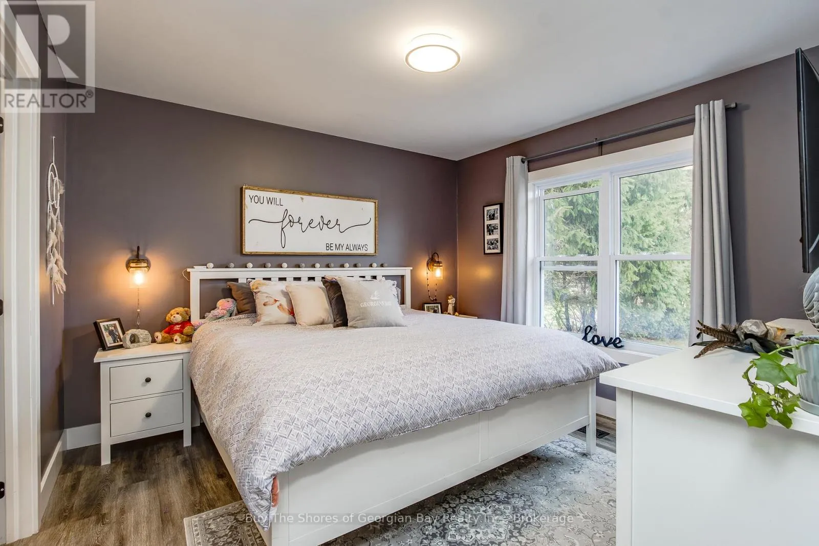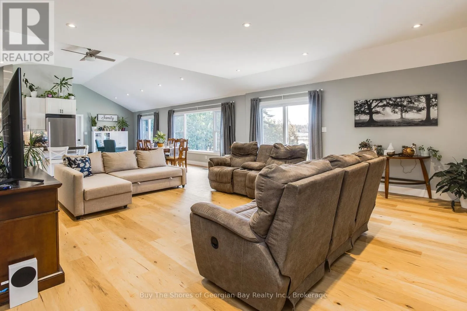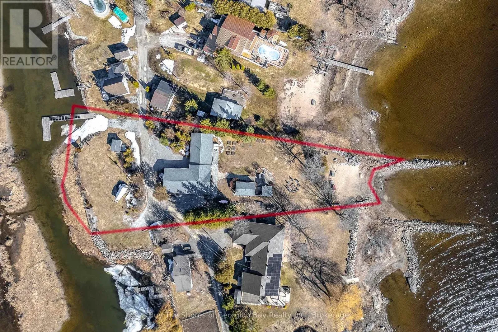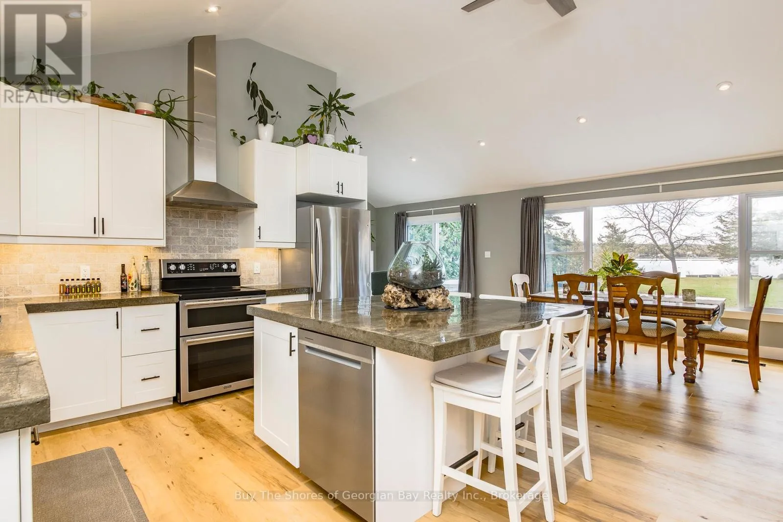 Beautiful 2019 ranch bungalow offering rare double-waterfront on Georgian Bay, with water views from both the front and back of the property. This open-concept home features a modern kitchen with all major appliances and a large walk-in pantry, flowing into bright dining, living, and sitting areas with unobstructed Bay views. The spacious primary bedroom includes a walk-in closet and 4-pc