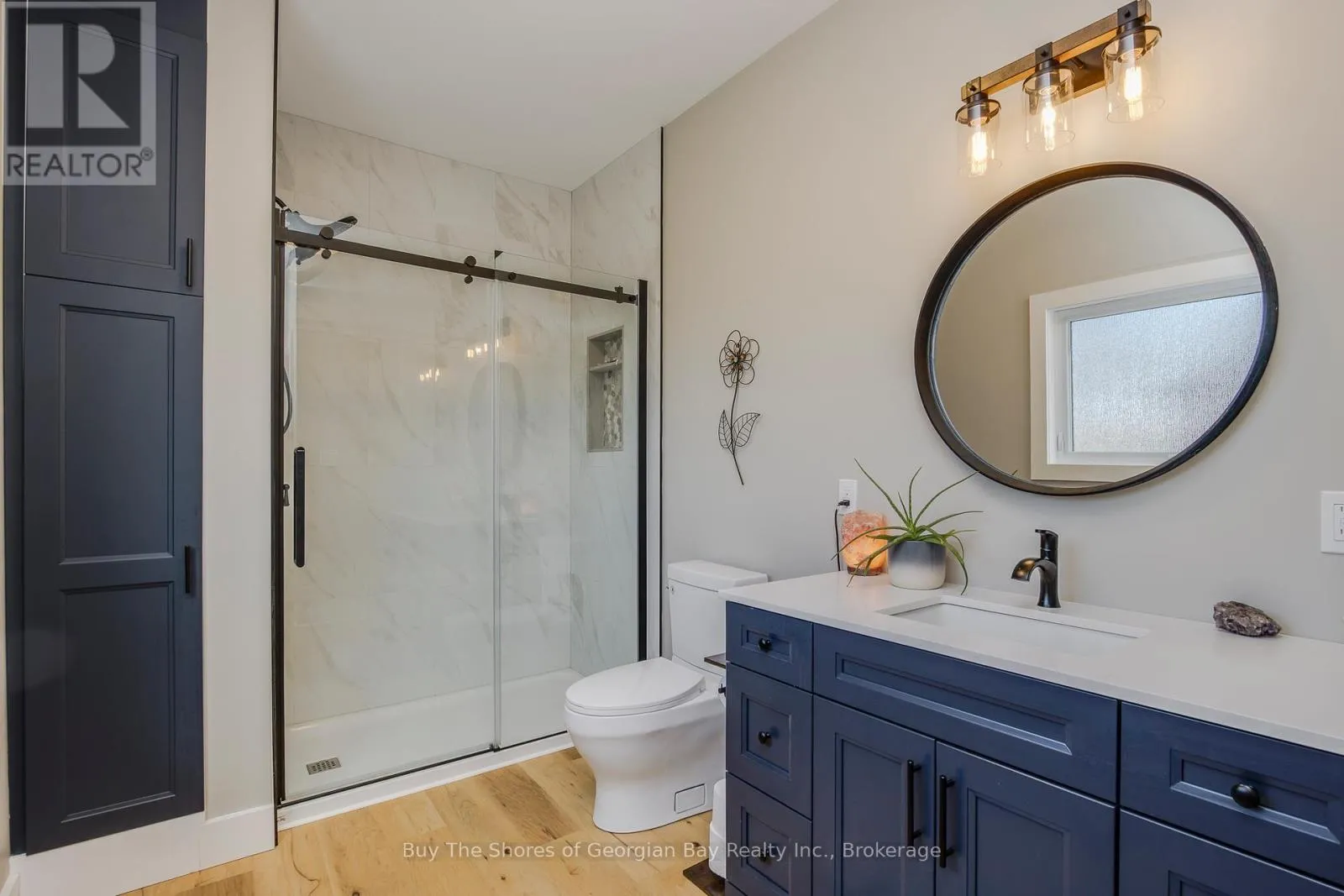 Beautiful 2019 ranch bungalow offering rare double-waterfront on Georgian Bay, with water views from both the front and back of the property. This open-concept home features a modern kitchen with all major appliances and a large walk-in pantry, flowing into bright dining, living, and sitting areas with unobstructed Bay views. The spacious primary bedroom includes a walk-in closet and 4-pc