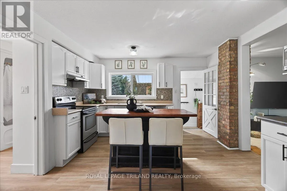 Desirable Byron bungalow on a premium oversized lot! Set on a rare 187-ft deep property, this home offers a spacious backyard oasis perfect for entertaining. This fully fenced scenic backyard features a picturesque gravel firepit and mature trees. The main floor features 3 bedrooms, a functional kitchen with a moveable island, a cozy living room with exposed brick, barn door