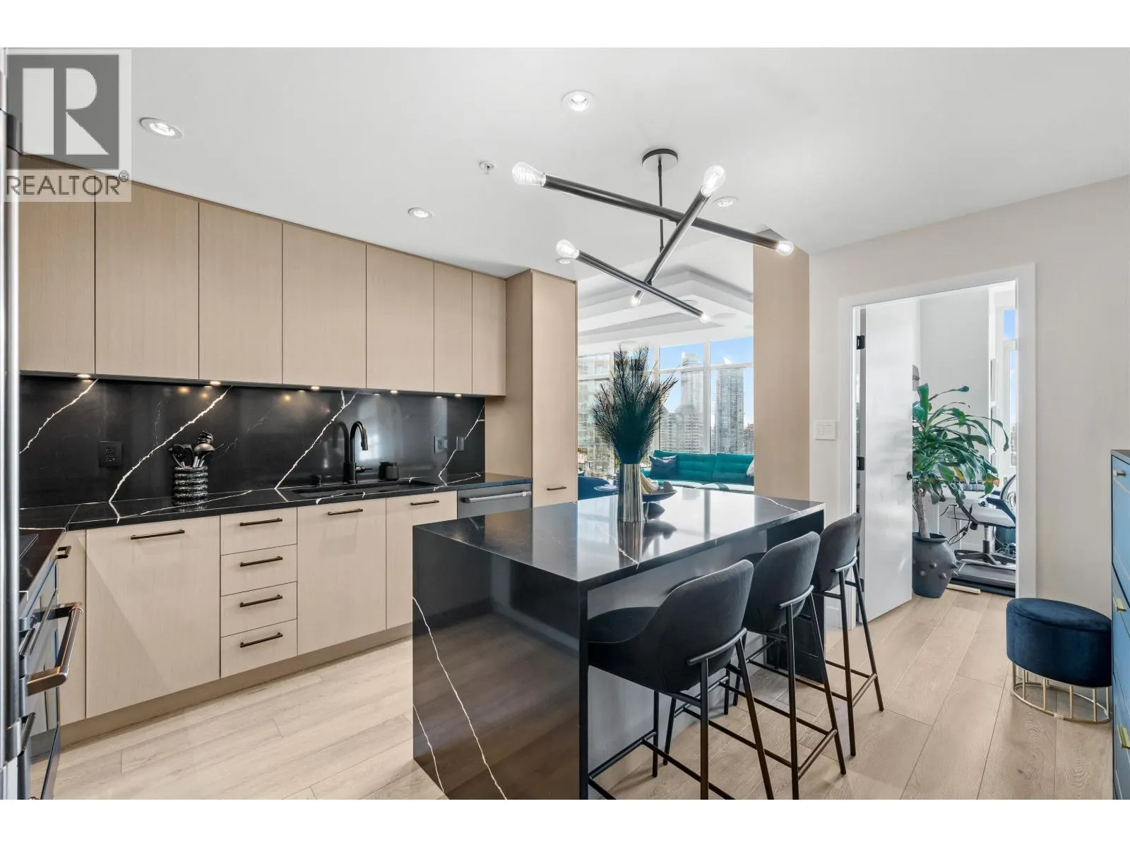 SELLING FULLY FURNISHED! *or partially or without!* At 2 years young this 2 bedroom/2bathroom condo was stripped down to the drywall and reimagined by award winning interior designer Daniel Meloche. This home was renovated top to bottom from the brand new kitchen (including extended island, quartz stonework, and new appliance package with induction cooktop), new flooring, new blinds, new LG
