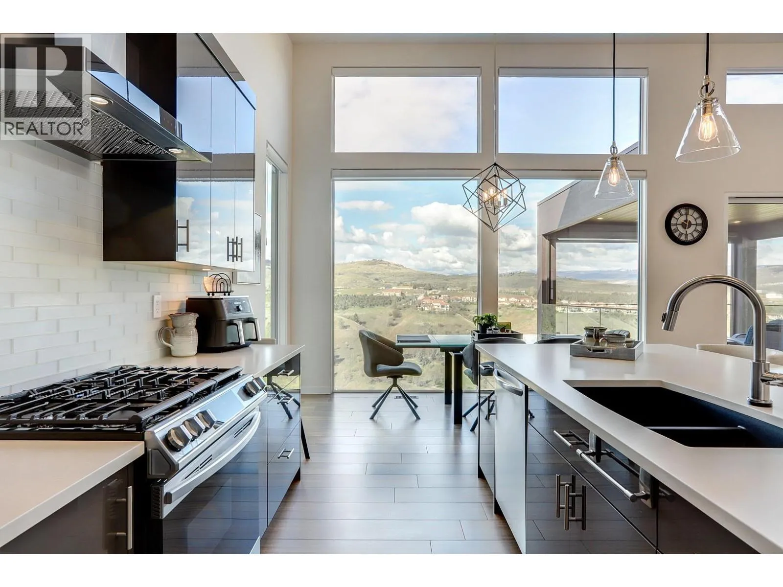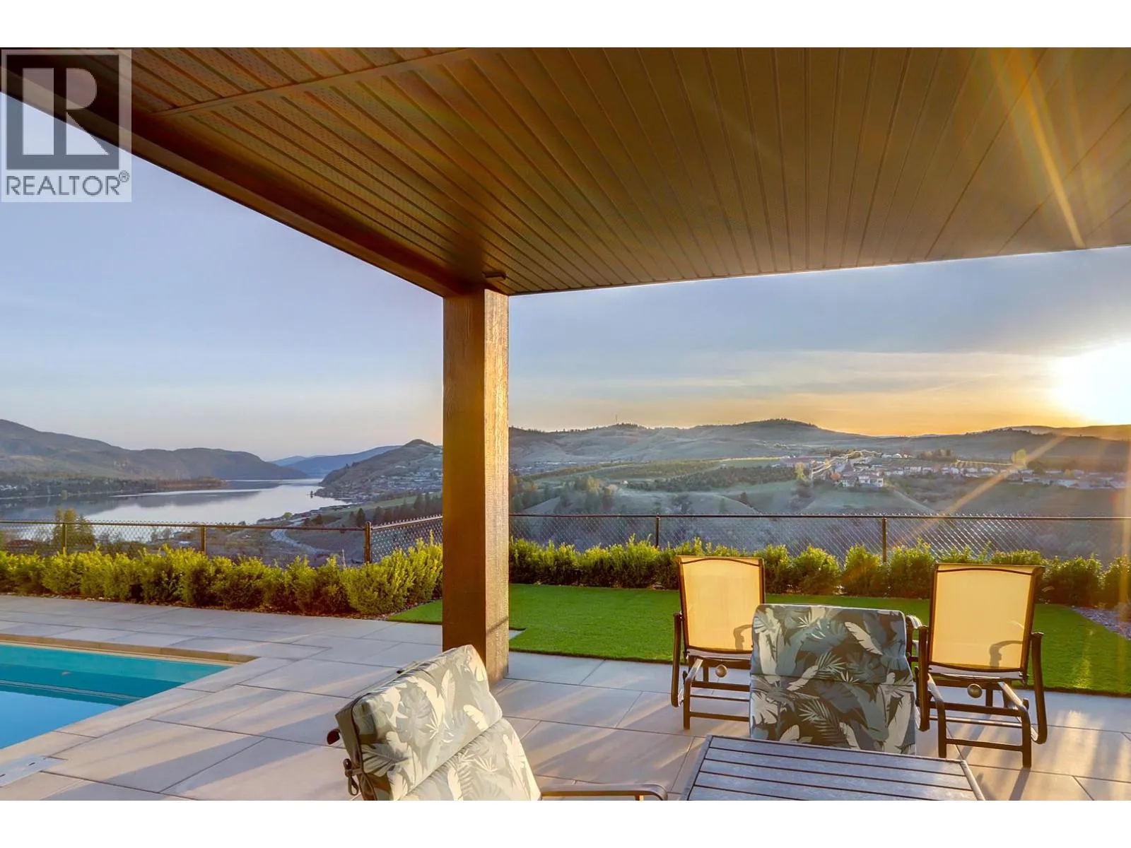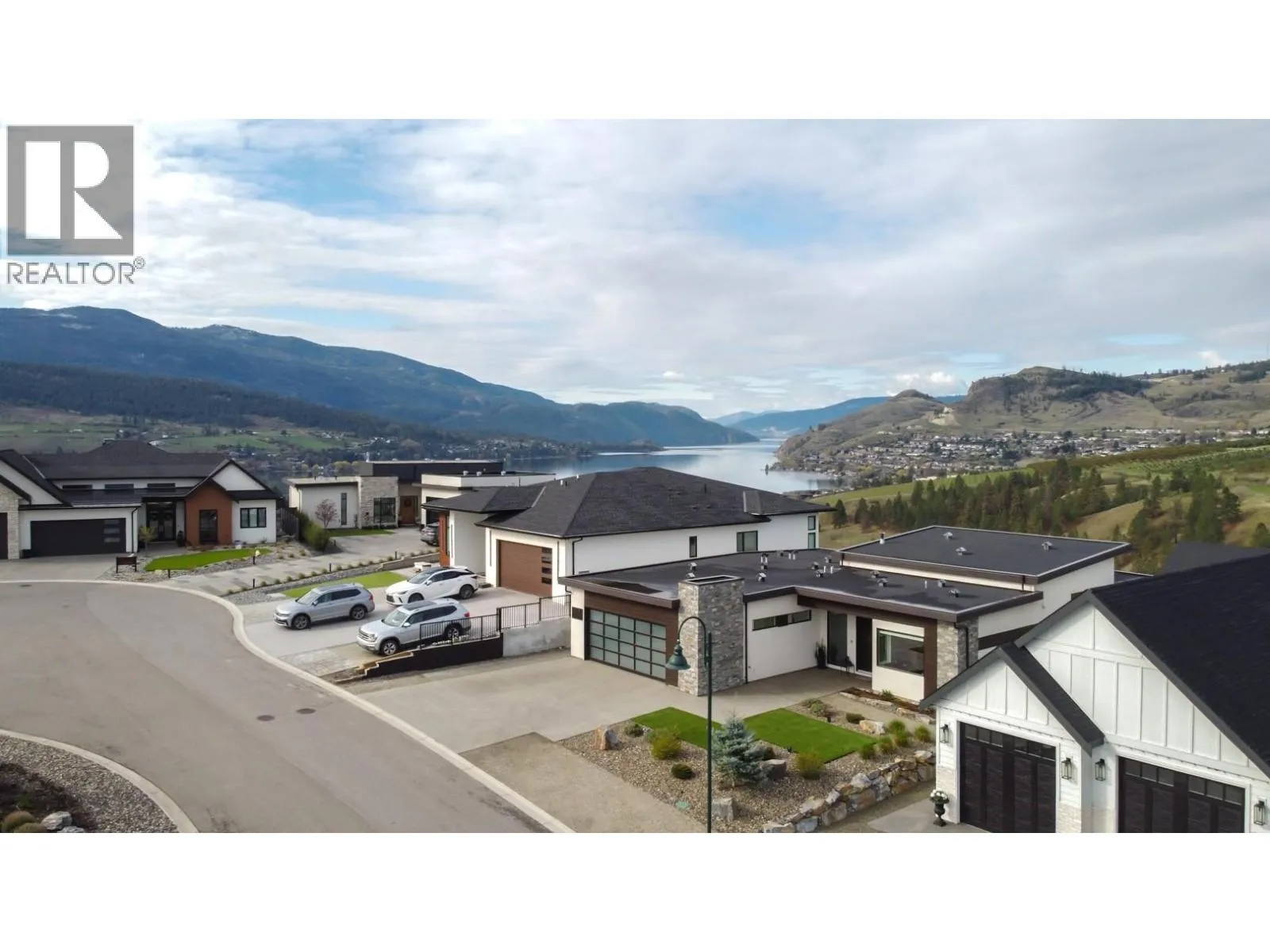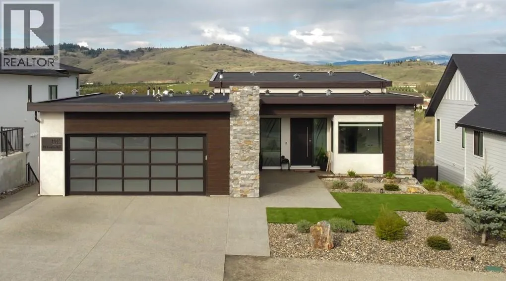 Welcome home to this exceptional Okanagan lifestyle residence with stunning panoramic views of Kalamalka Lake, Vernon Golf Club and valley mountains. This 4 bed, 4 bath, 2022 custom built, modern home is a showstopper with inground saltwater pool with electric cover and low maintenance landscaping including irrigation throughout the front and back yards. Inside the beauty continues with impressive, vaulted