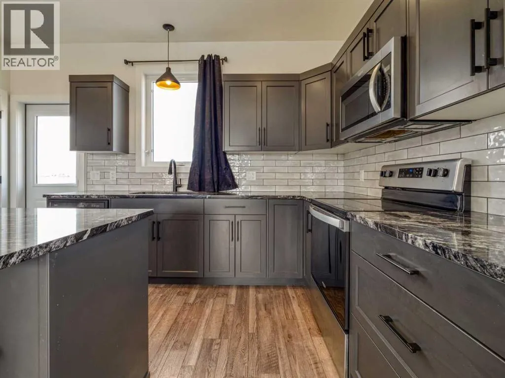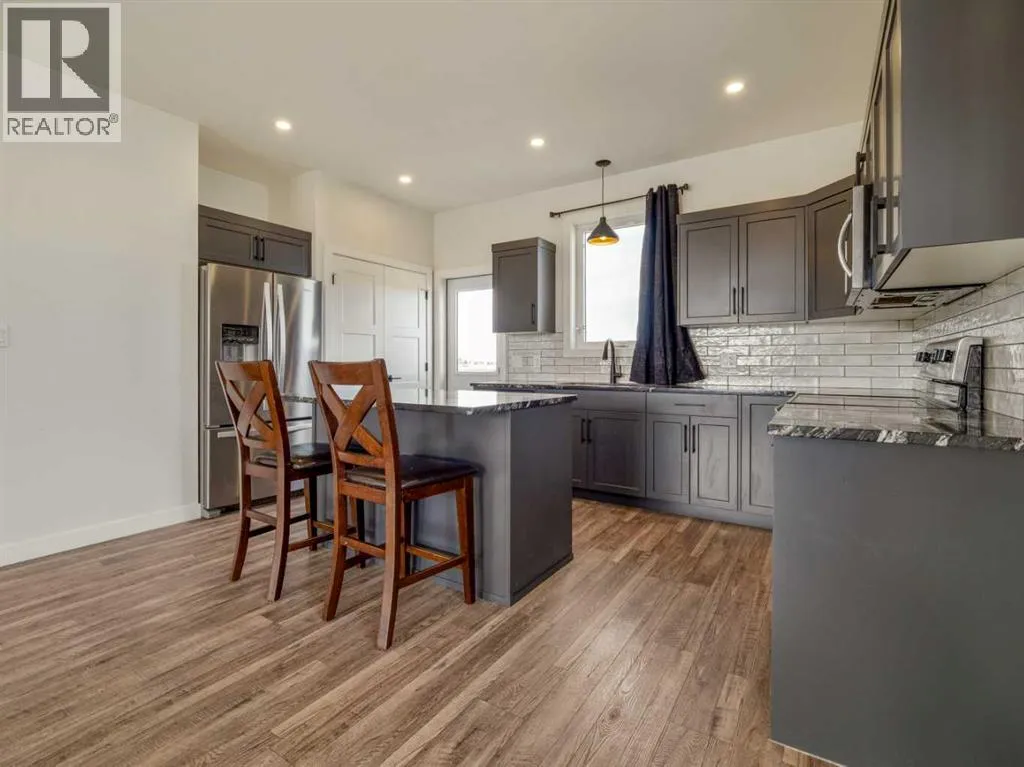 Welcome to this beautifully finished home in Prairie Lake Estates, close to serene ponds and walking paths. With Hardie Board siding and a charming front covered deck, this home is perfect for enjoying your morning coffee. The front yard is fully landscaped with underground sprinklers, while the backyard, backing onto a peaceful field, is a blank canvas awaiting your vision.