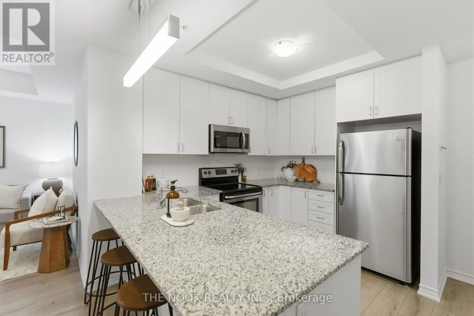 Fabulous Main floor Condo at Whitby’s Harbourside Condominiums. 775 Sq Ft plus Terrace. This One Bedroom Plus Den Shows Like a Model Suite. Coffered Ceilings, Spacious Kitchen With Granite Counters, Combined Living /Dining Room with W/O to Private Terrace. Separate Den With Pocket Door Perfect For A 2nd Bedroom or Office. 1 Owned Surface Parking Space and Locker. Includes Stainless
