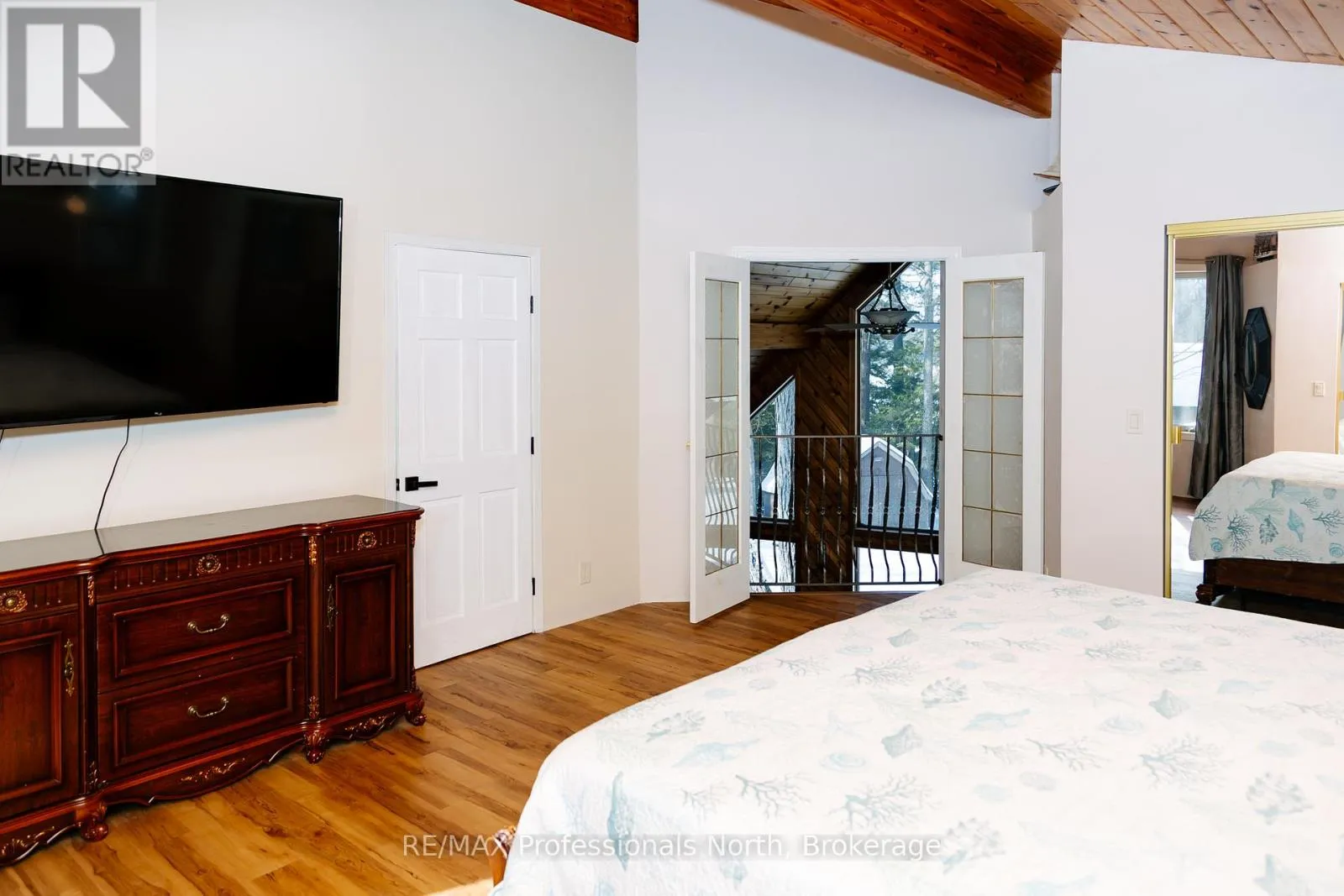 Set on a private, well-treed lot between Carnarvon and Minden, this spacious home offers a quiet setting just a short walk to Twelve Mile Lake’s public beach and the well-known Peppermill restaurant. Positioned back from the highway for added privacy, the property also includes an 8′ right of way to the lake, providing access to a beautiful shoreline and views