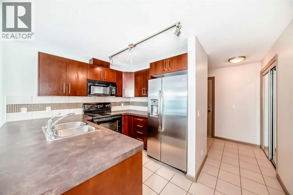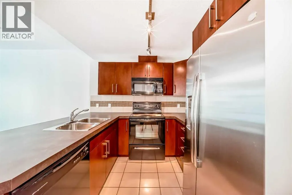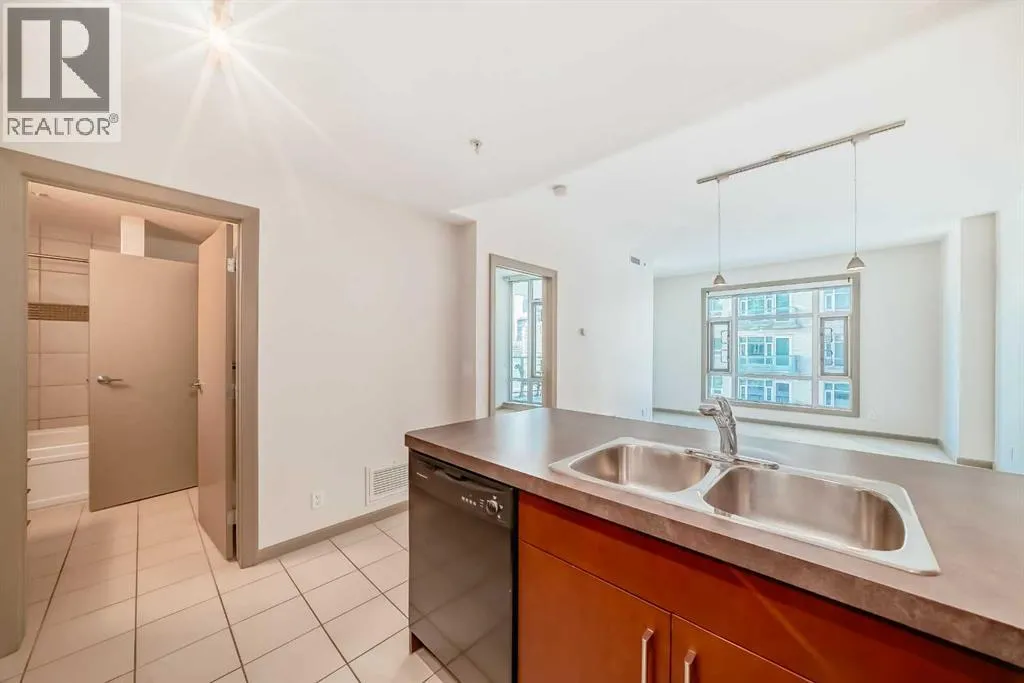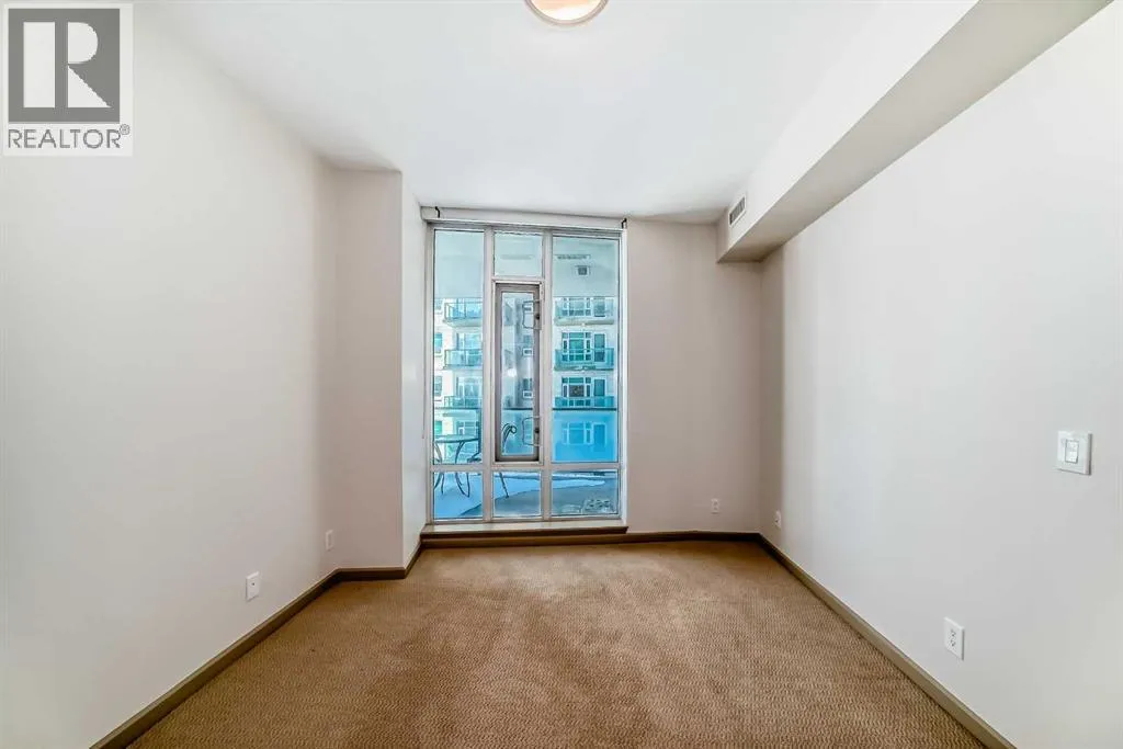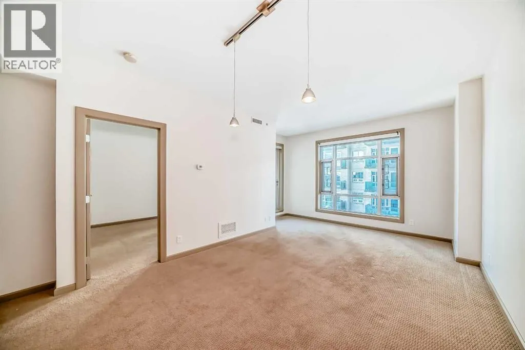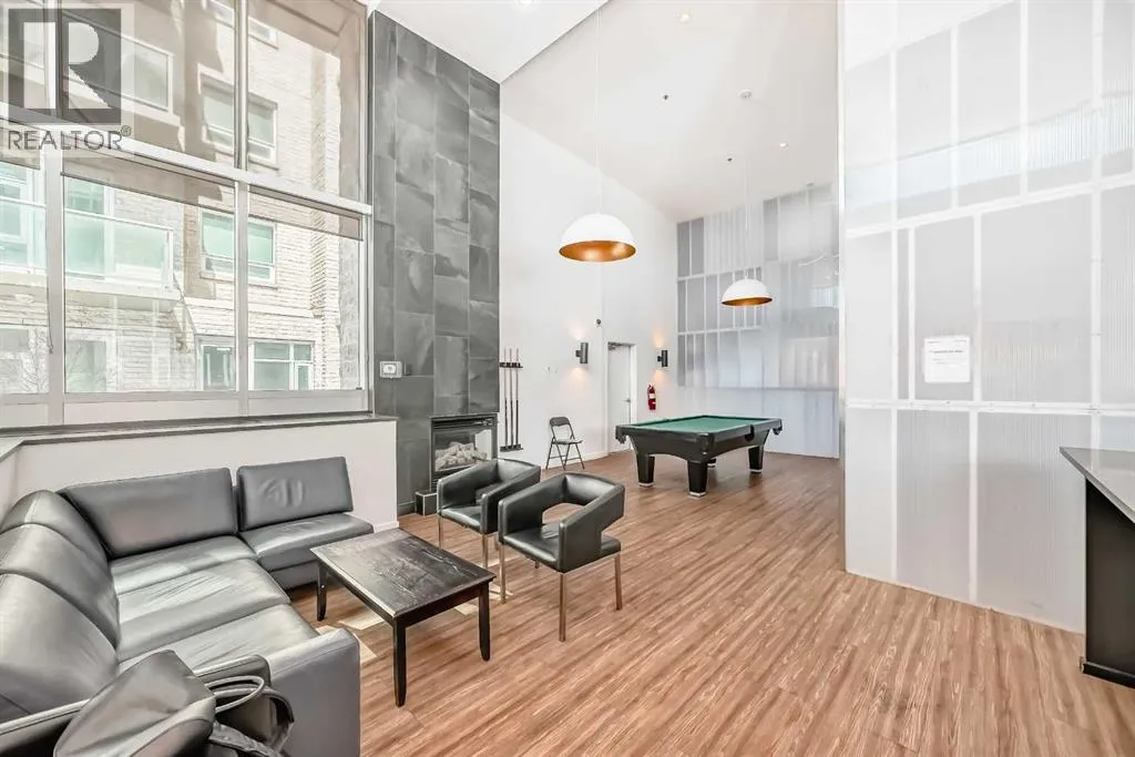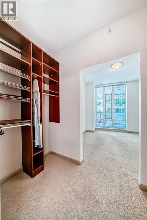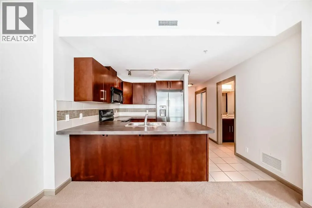Welcome to this spacious and well-appointed 1-bedroom condo in the sought-after VETRO building, ideally located in the heart of Calgary’s vibrant Beltline. This open-concept unit offers a functional layout with 9-foot ceilings, creating a bright and airy living space perfect for both everyday living and entertaining.The kitchen features ample cabinetry, generous counter space, and a convenient breakfast bar that seamlessly