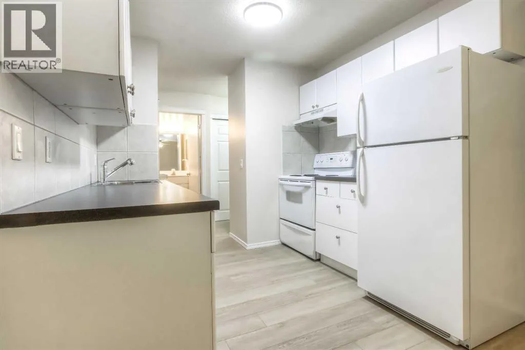 Fabulous inner city location! A perfect first time buyer or investor unit. Very reasonable condo fees, two bedroom, one bath, insuite laundry, assigned parking stall and storage locker and its CHEAP! The condo has just been freshly painted and has new white oak luxury vinyl plank flooring through out. Being in the vibrant community of Bridgeland, it is walking distance