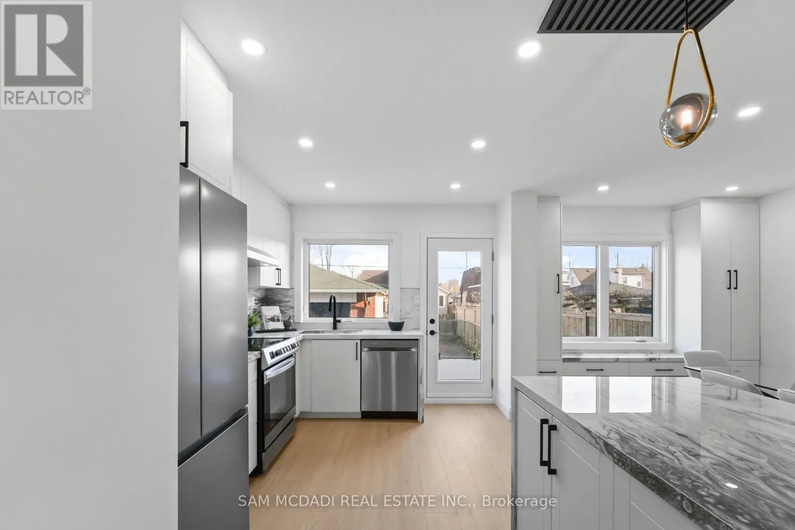 Welcome to 25 Falstaff Ave, this fully redesigned residence offers a sophisticated blend of modern design and is thoughtfully curated throughout. The home unfolds with hybrid waterproof flooring, clean architectural lines, and a bright, open-concept layout that enhances both form and function. The main level is designed for seamless living and entertaining. A sleek, contemporary kitchen anchors the space,