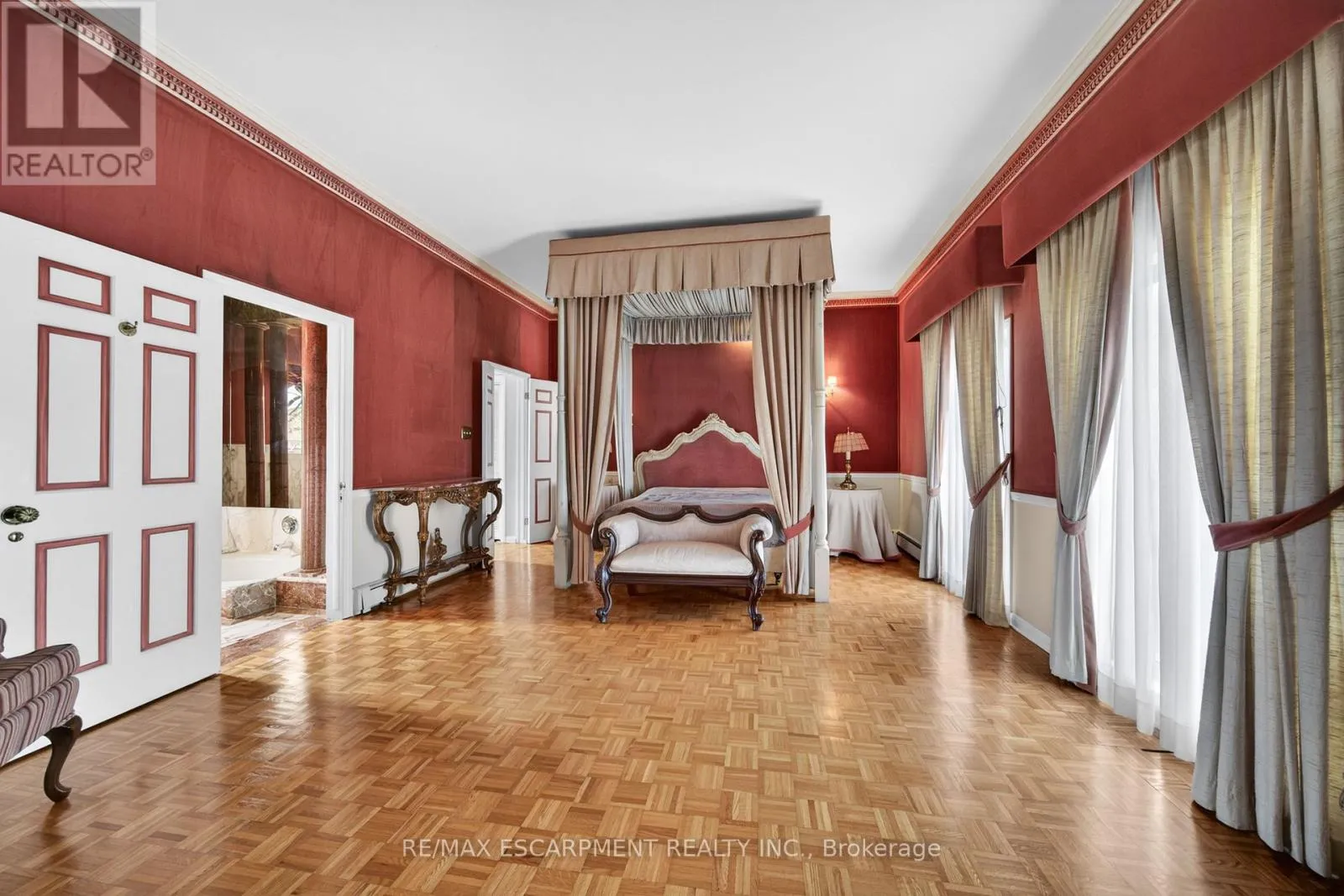 Spectacular gated estate on a rare 1-acre lot in a desirable, rapidly developing area. European-inspired villa w/angel stone exterior, marble pillars, 11 ft main floor ceilings, grand marble foyer, and solid oak spiral staircase. Sunken living room w/ wood burning f/p, formal dining rm, kitchen w/granite c/t, & finished basement with walk-up plus in-law potential. Private grounds with outdoor kitchen.