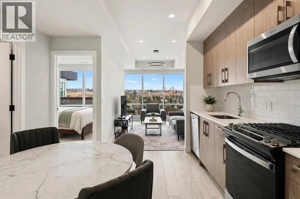 TOP FLOOR living at it’s best, this beautifully designed 2-bedroom, 1-bathroom condo offers stunning city views and a layout that truly makes the most of every square foot. The open-concept main living space is bright and inviting, with large windows that flood the home with natural light and create a seamless connection to the private balcony—perfect for morning coffee or