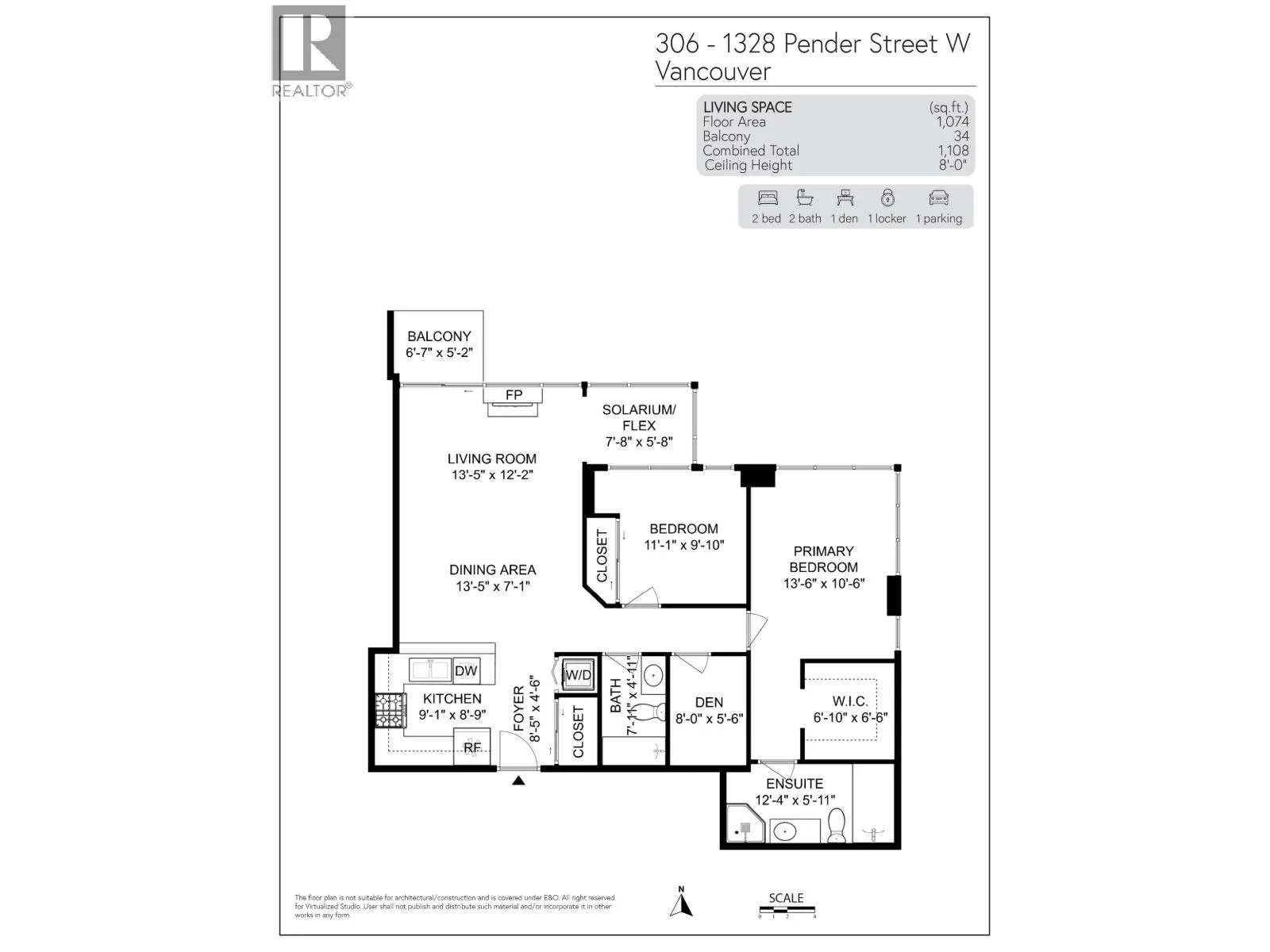 Experience elevated urban living at The Classico in Coal Harbour. This elegant 1,074 sqft corner suite features 2 bedrms, 2 bathrms, a den/office & a separate solarium ideal as a second workspace or junior bedroom. Expansive Floor-to-ceiling windows fill the home with natural light. The efficient layout offers spacious living/dining areas, an upgraded kitchen, new washer/dryer, and a generous primary