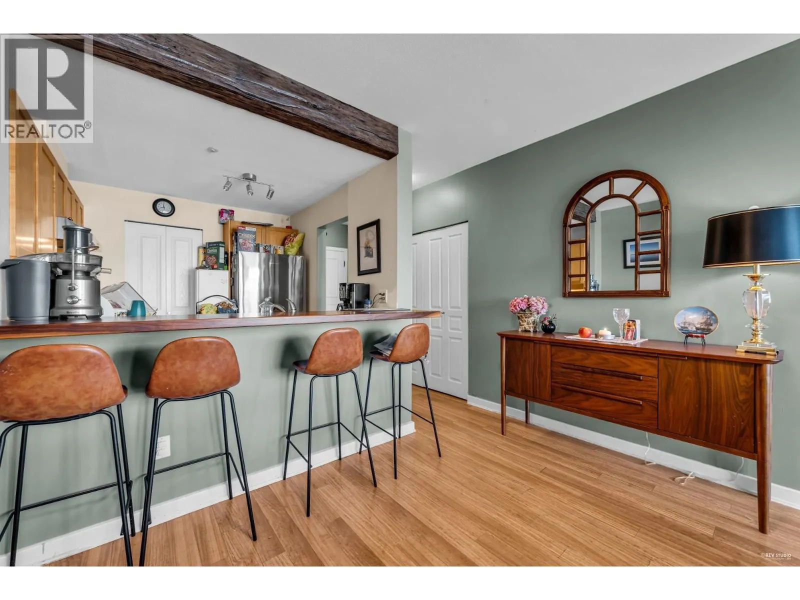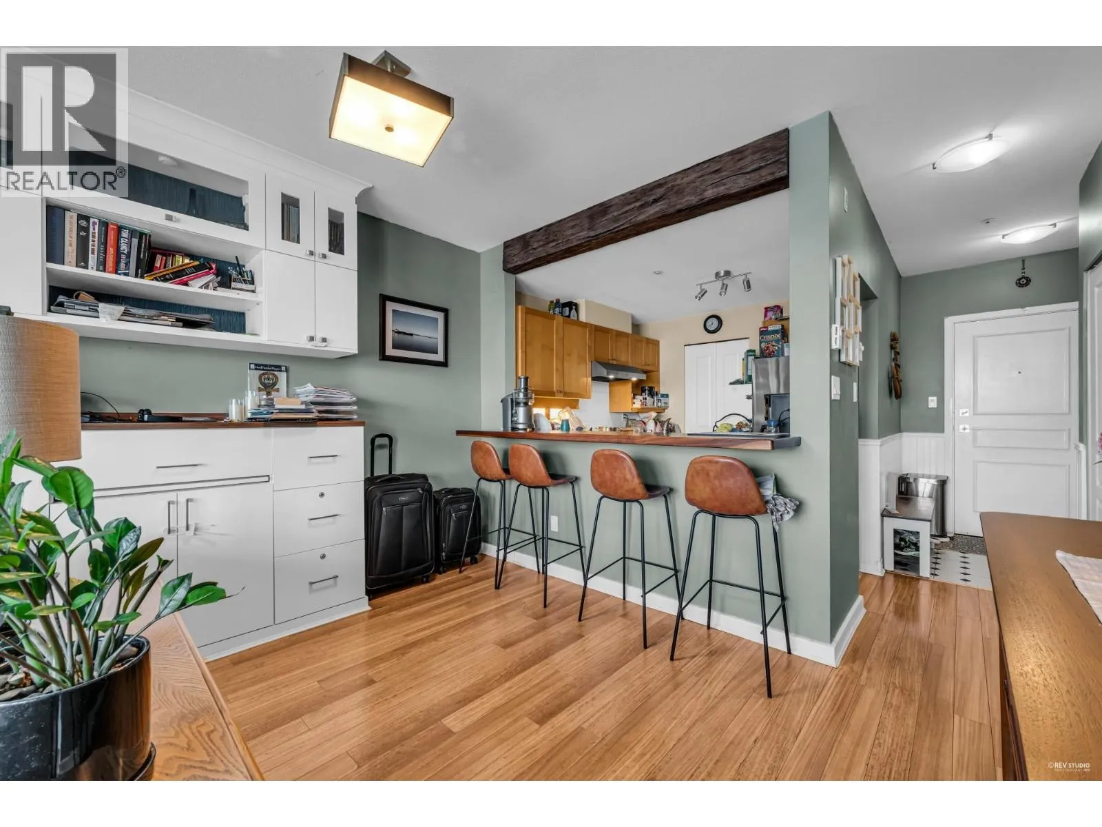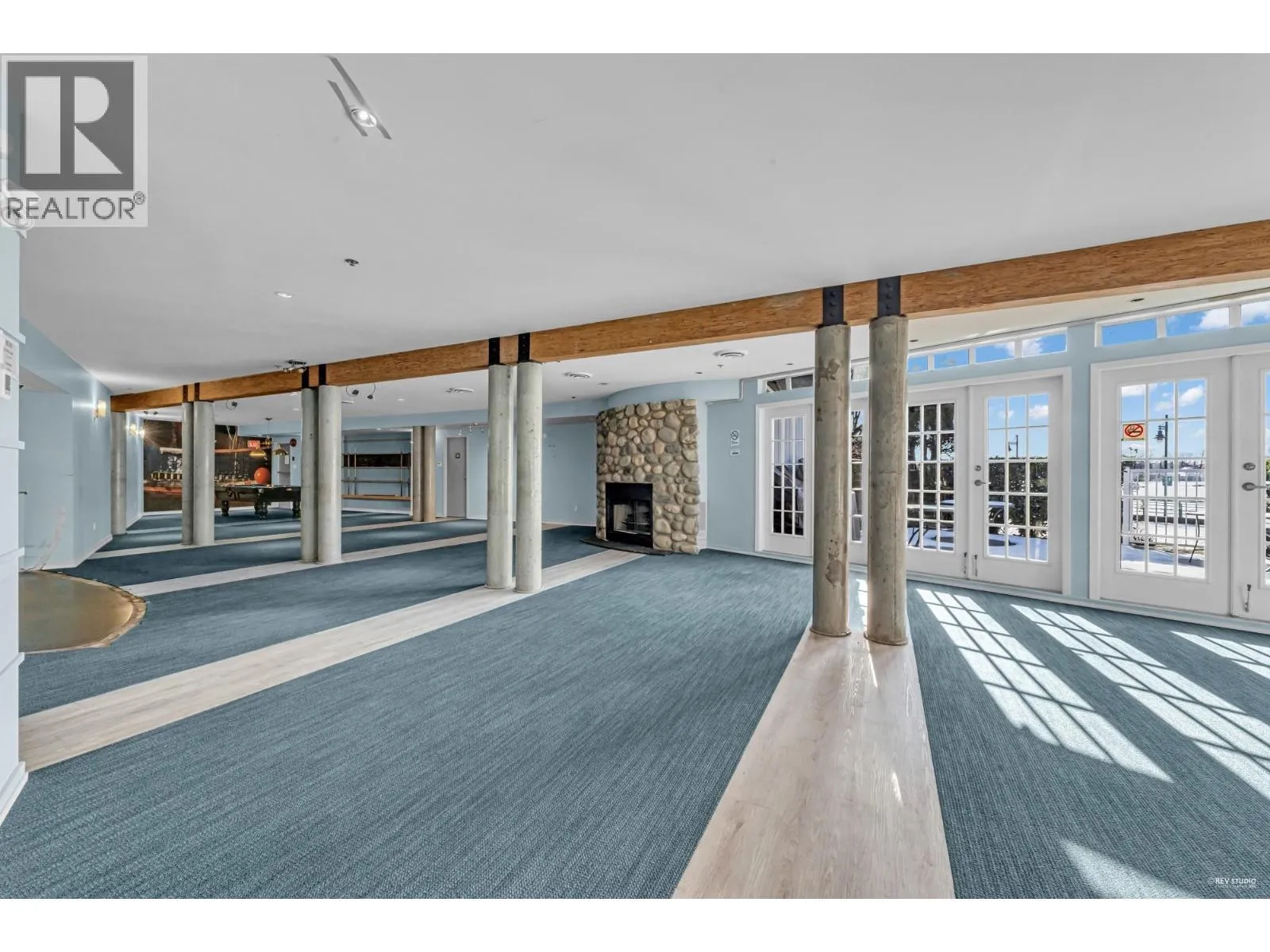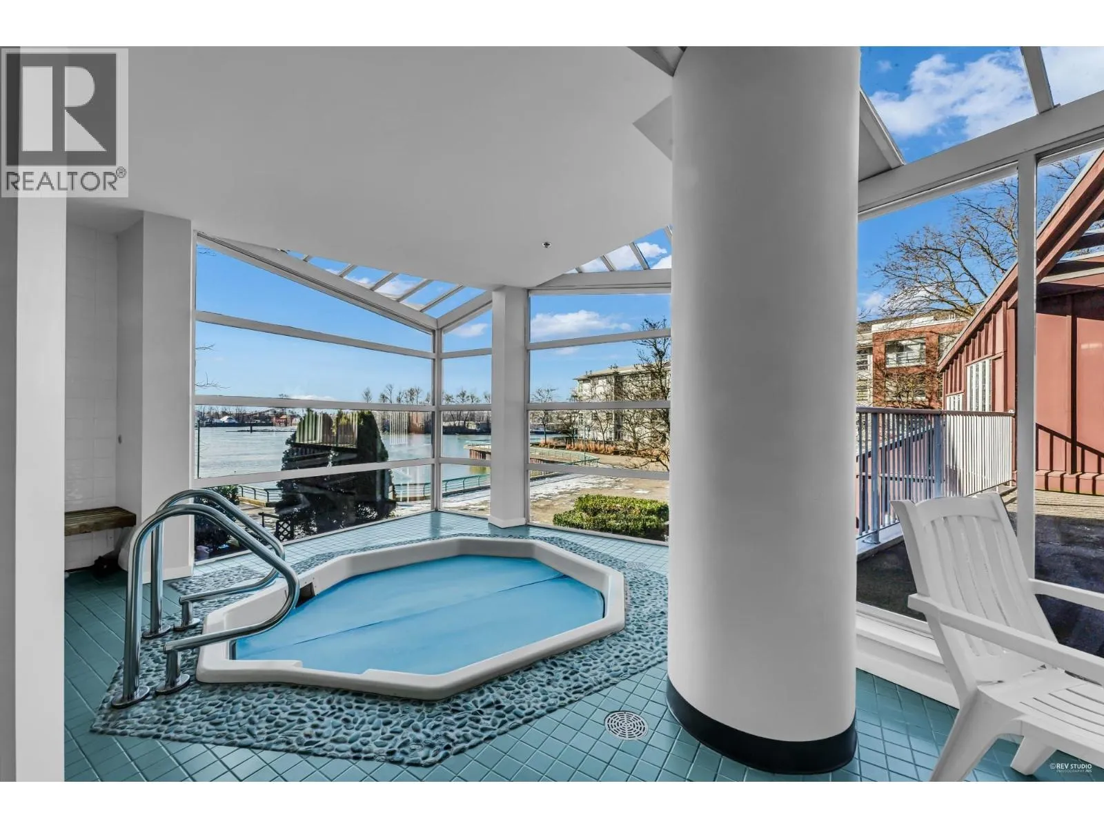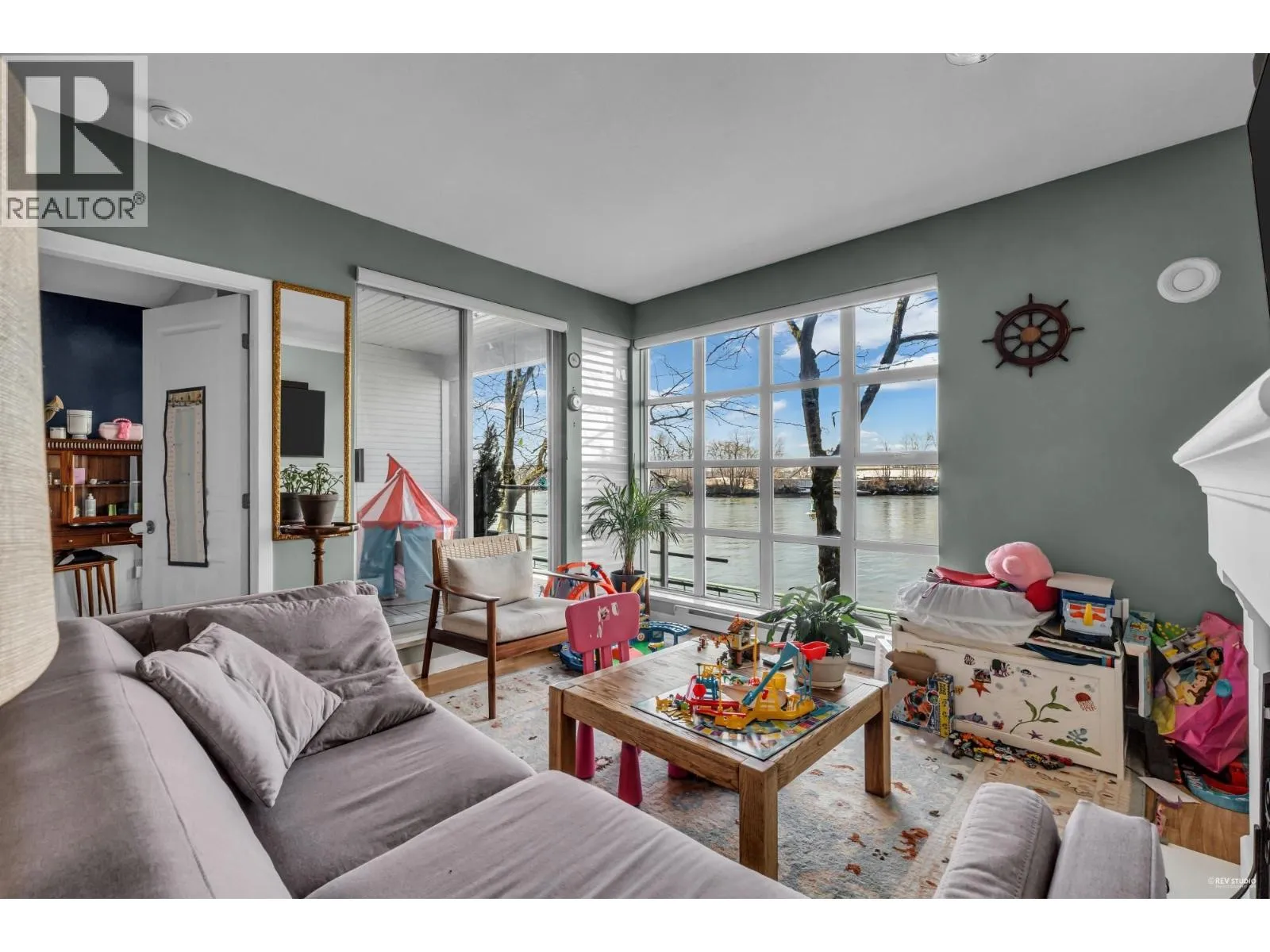 Waterfront! Enjoy unobstructed River views from this large West facing unit! Spacious layout with high ceilings, open kitchen, breakfast bar and large pantry. Living/dining room combo with gas fireplace, floor to ceiling window and a large covered balcony perfect for entertaining and relaxing! Updates include Elegant Cast Stone Fireplace Mantel, Floor to Ceiling built-in shelving, Extra large Hardwood Breakfast Bar,