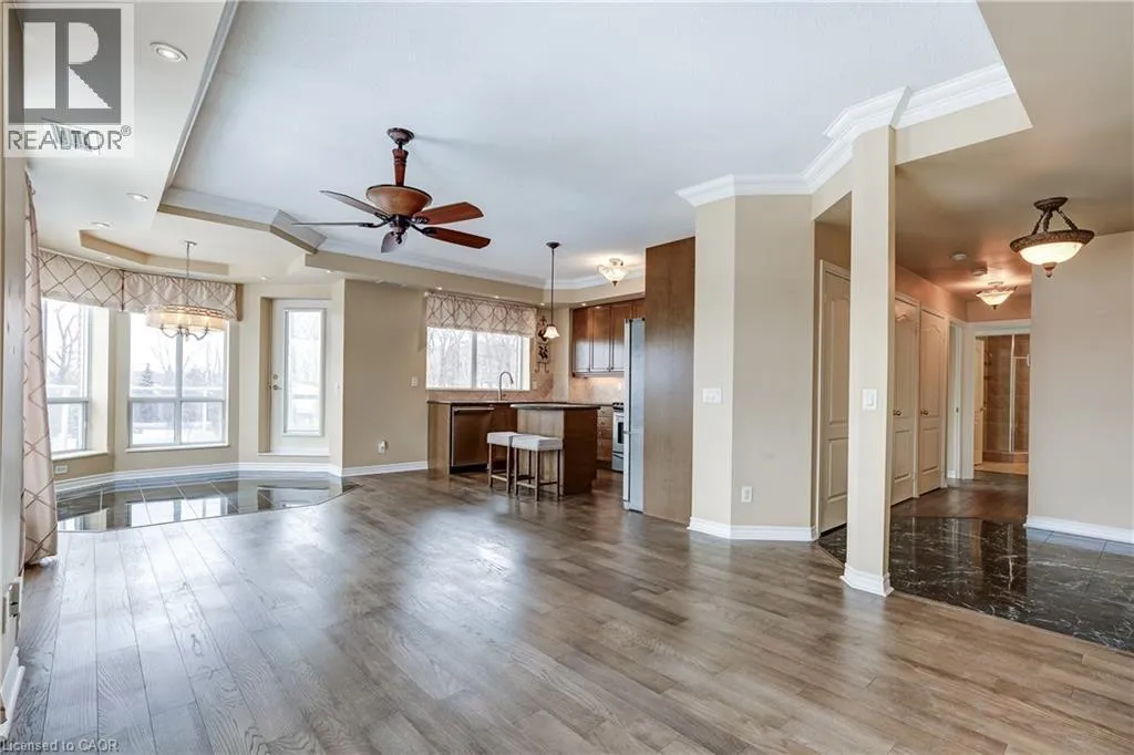 Welcome to this stunning corner suite approximately 1,238 sq. ft. in the upscale Woods End Condominiums, a well-maintained low-rise building. This original-owner home has been meticulously cared for and is surrounded by mature trees, providing privacy along with desirable south and west facing exposures. The Building backs onto green space. The open-concept layout features spacious living, family and dining areas