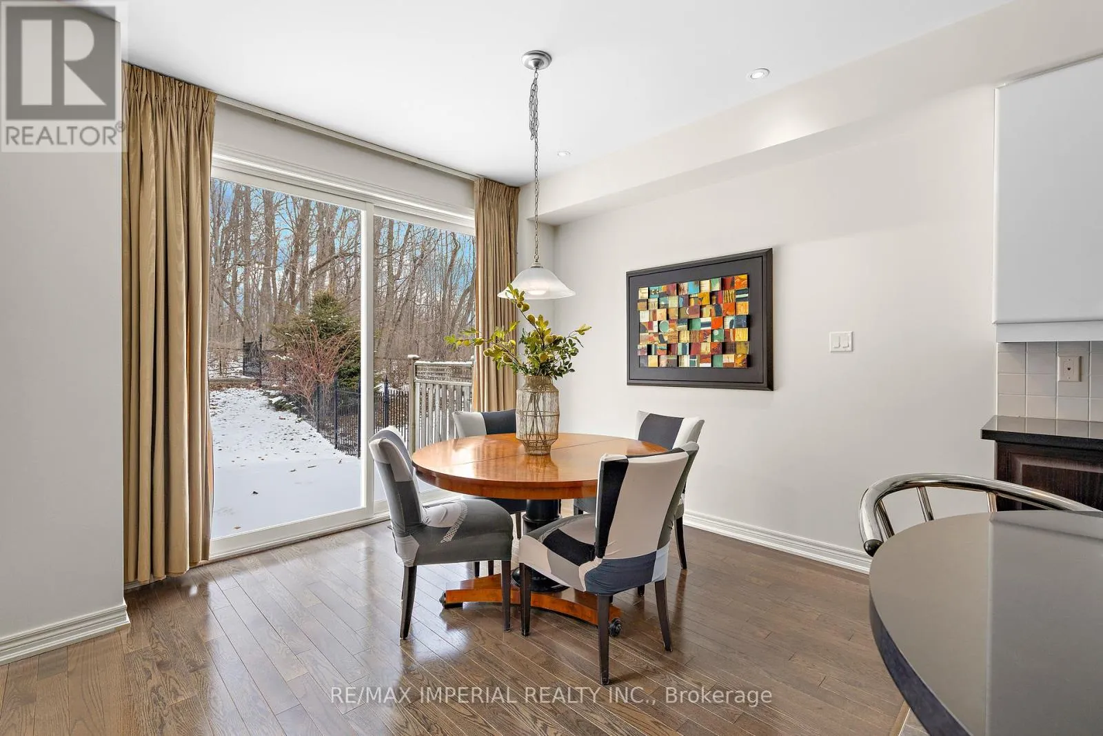 Rare opportunity in Inspiration Woodside Villas, F-R-E-E-H-O-L-D townhouse backing onto a quiet RAVINE setting. Exterior with garage-only connection, enjoy the space and privacy of a detached-style home. Customized floor plan with 9 ft ceilings, hardwood flooring, elegant coffered ceiling, and a large bay window bringing in plenty of natural light. Upgraded kitchen with extended cabinetry, granite countertops, and a functional